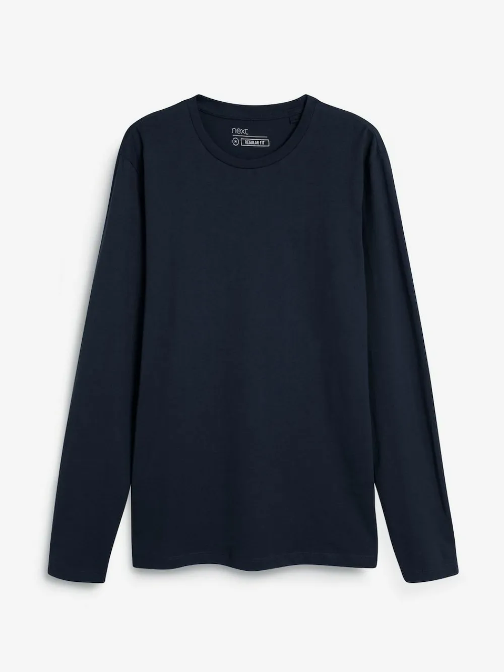 Online Next Slim Fit Long Sleeve Crew Neck T-Shirt Navy Blue