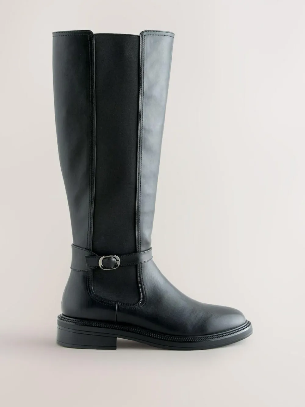 Step into sophisticated style with these riding boots. The sleek finish and elegant buckle detail create a timeless look, while Forever Comfort® technology ensures all-day wearability. Available in a Standard or Wide fit, these versatile boots are a stylish choice for any occasion.Standard/Wide fit Forever Comfort® technology Buckle detail Zip fastening Low block heel Upper – Other Materials, Textile, Lining & Sock – Other Materials, Textile, Sole – Other Materials.