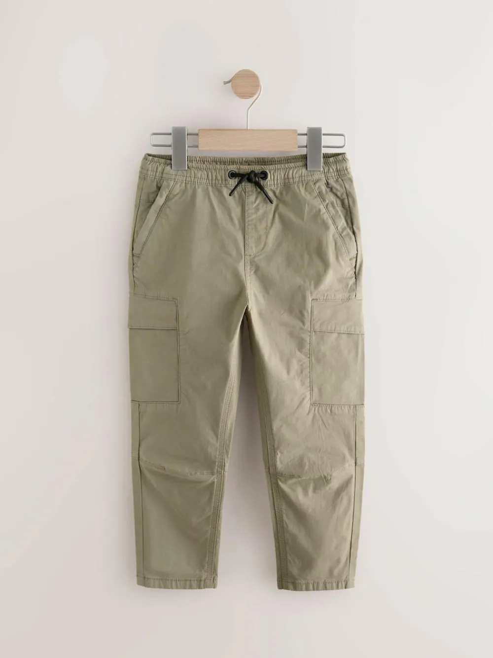 With an easy pull-on waist and a utility-inspired look, these stylish neutral trousers have a tapered leg shape that’s perfect for showing off their trainers, with dual cargo pockets to the thighs and side pockets. Tapered leg Cotton-rich fabric Cargo pockets Side pockets Pull-on waist Machine washable. 97% Cotton, 3% Elastane.