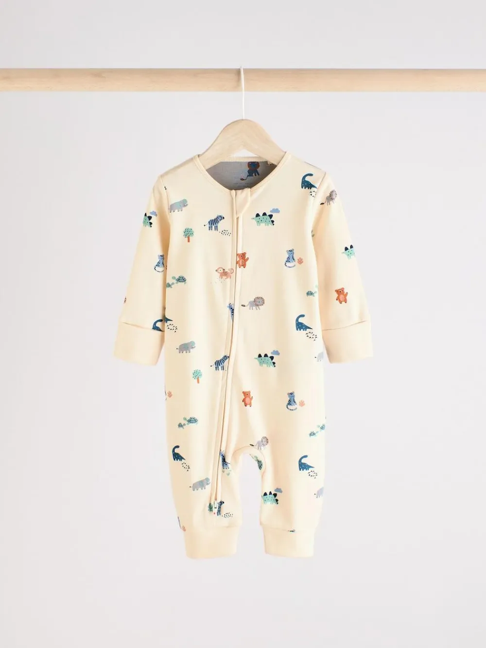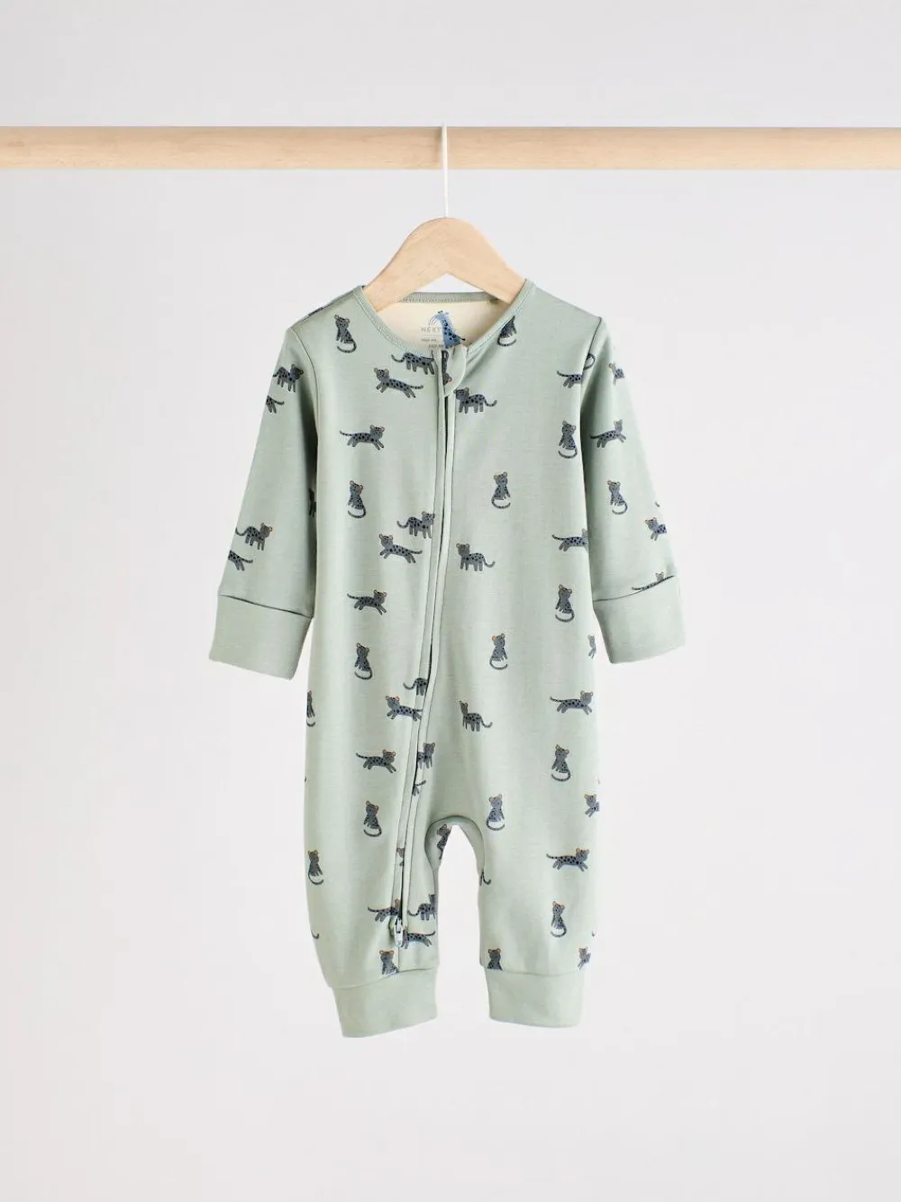 Online Next Teal Blue Baby Printed Zip Sleepsuits 3 Pack (0mths-3yrs)