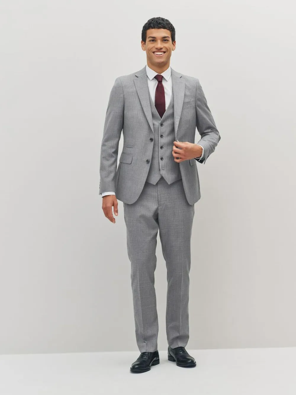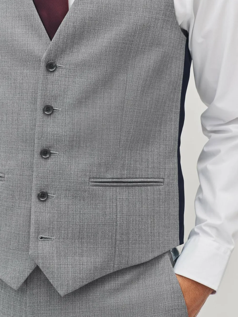 Online Next Textured Wool Blend Suit Waistcoat Light Grey
