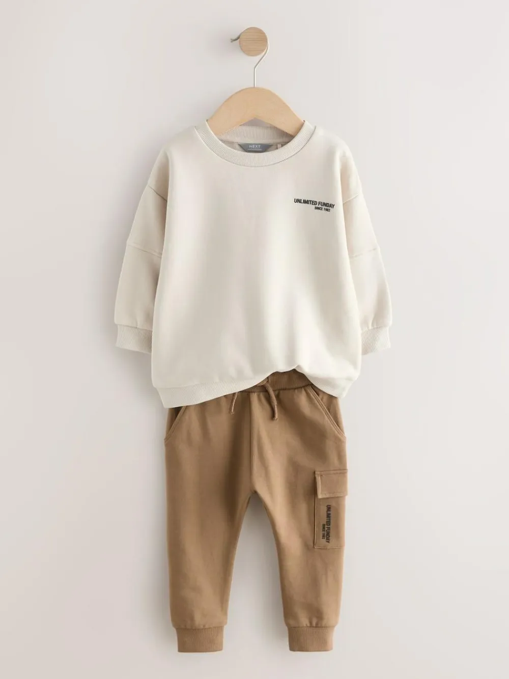 Online Next Utility Sweatshirt and Super Skinny Joggers Set (3mths-7yrs) Ecru Off White