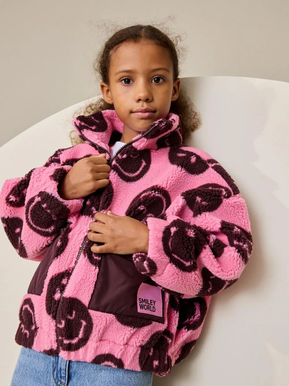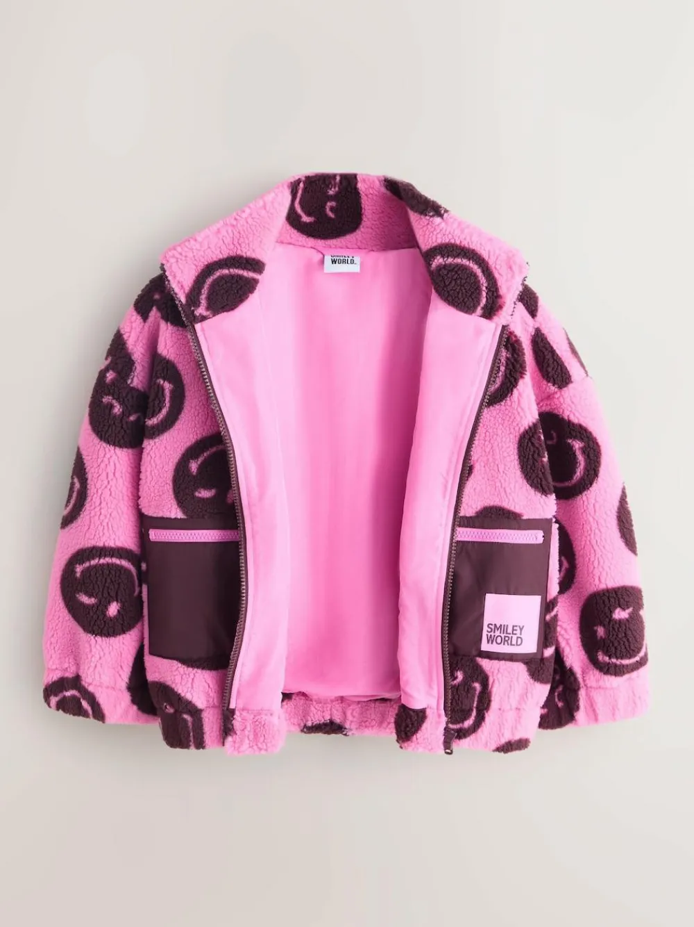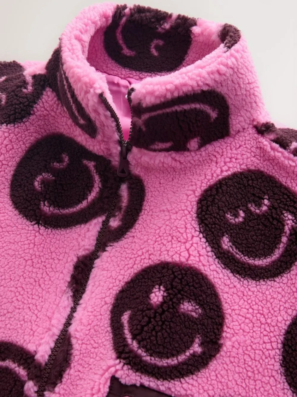 Online Next Zip Up Borg Jacket (3-16yrs) Pink/Berry Smiley