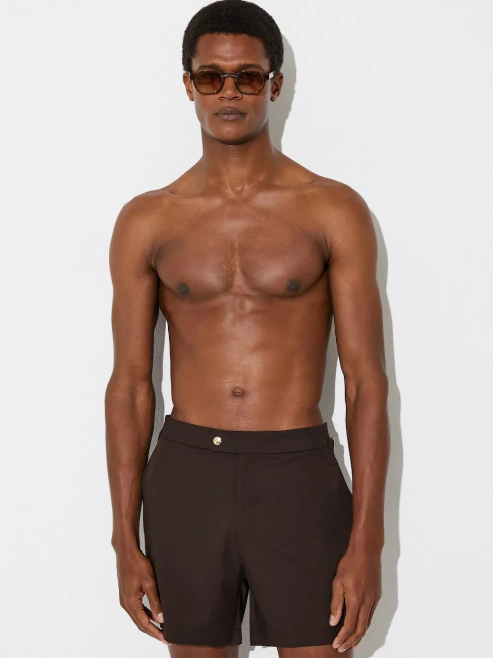 The Chocolate Brown Sun swim shorts are a summer essential, crafted from quick-drying fabric. Side adjusters ensure a comfortable, personalised fit, while side slip pockets enhance practicality. Quick drying Side adjusters Side slip pockets Mesh lining Press-stud with zip The model is wearing a size M. Measurements of model: 6ft 2.5” / 189cm. Machine washable. Main 90% Recycled polyester, 10% Elastane. Lining 100% Polyester.
