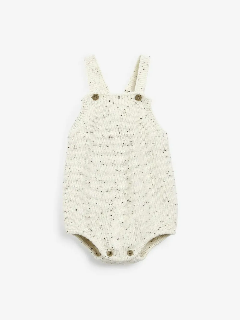 A super cute and stylish knitted romper, it features button straps and popper leg openings for easy dressing. Made from 100% cotton. Machine washable. 100% Cotton.