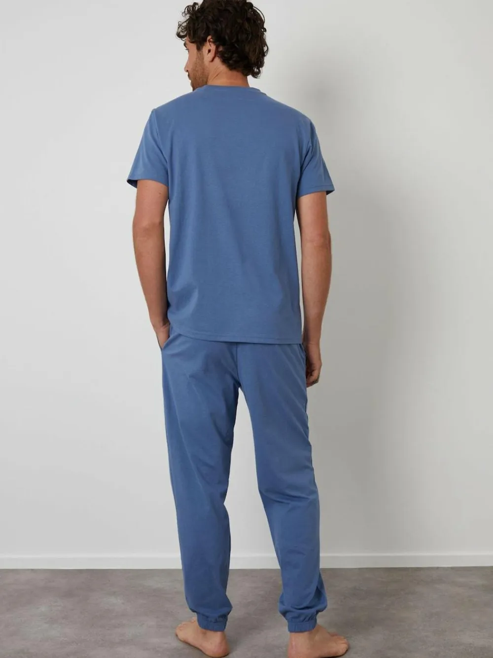 Put your feet up with these peached cotton pyjamas from Threadbare. 2-piece set. Peached cotton fabric. Short sleeve T-Shirt. Ribbed crew neck. Jogger-style bottoms with elasticated waistband and drawcords. Side entry pockets. Cuffed hem. Model wears UK size M. Machine washable. 100% Cotton.