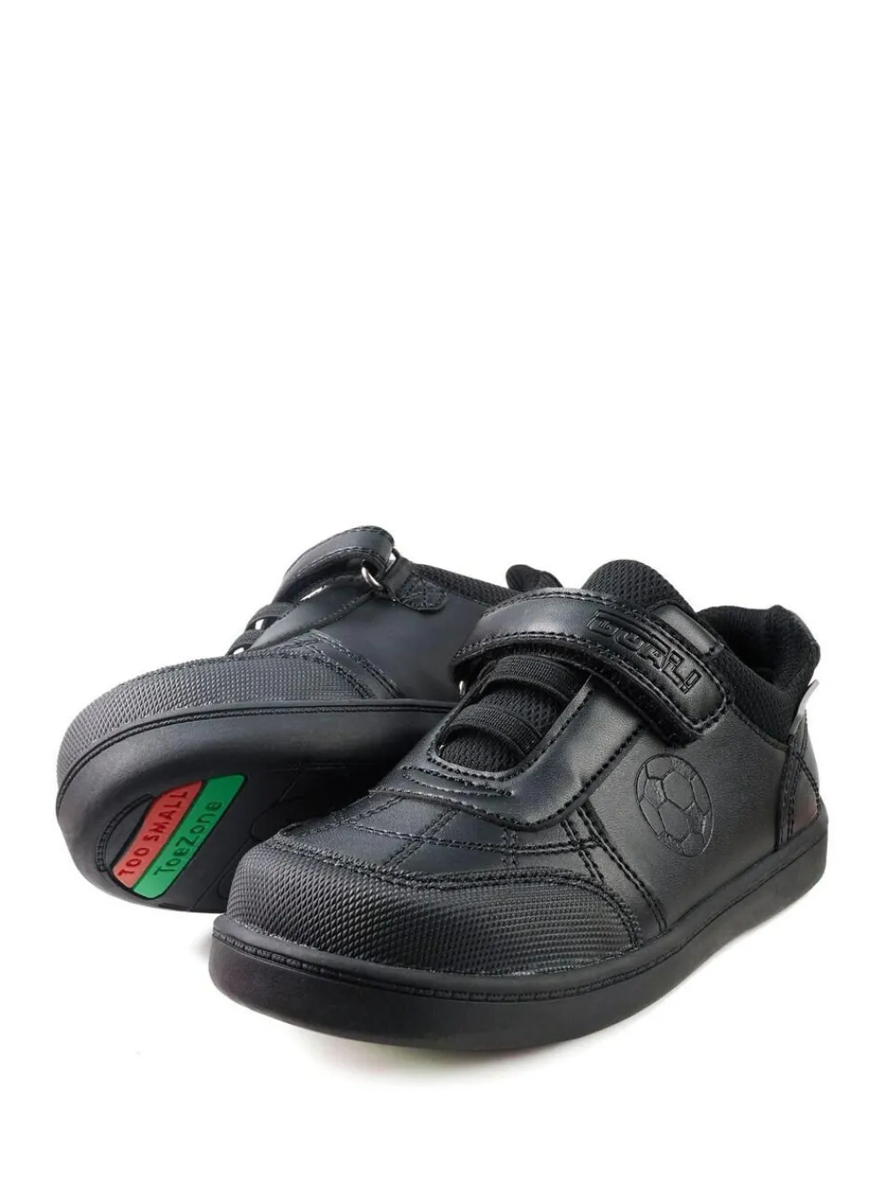 ToeZone, with its unique fitting guide, follows the Three Simple Steps: 1. Place your foot on the sole. 2. Align the heel on the gauge. 3. Compare the position of the longest toe with TOEZONE! The ToeZone guide also helps monitor your children’s growth so you will know when you are ready for your New ToeZones! BLAKE the Football Novelty shoe. Your Little ones will love these shoes they are great for running around the playground. Features: Super Comfy Memory Foam in Socks Micro Fresh For Fresh Feet Scuff-resistant upper for durability Non-Marking Soles 3M reflective Rubber Soles Rubber Toe Caps Free Draw String Bag Check out the LEFT and RIGHT print on the socks, it is super helpful! ToeZone advises before you buy to check out the Printable fitting guide Unique to ToeZone. They know your feet will love ToeZone! Main – 100% Leather. Lining – 100% Textile. Sock – 100% Rubber.