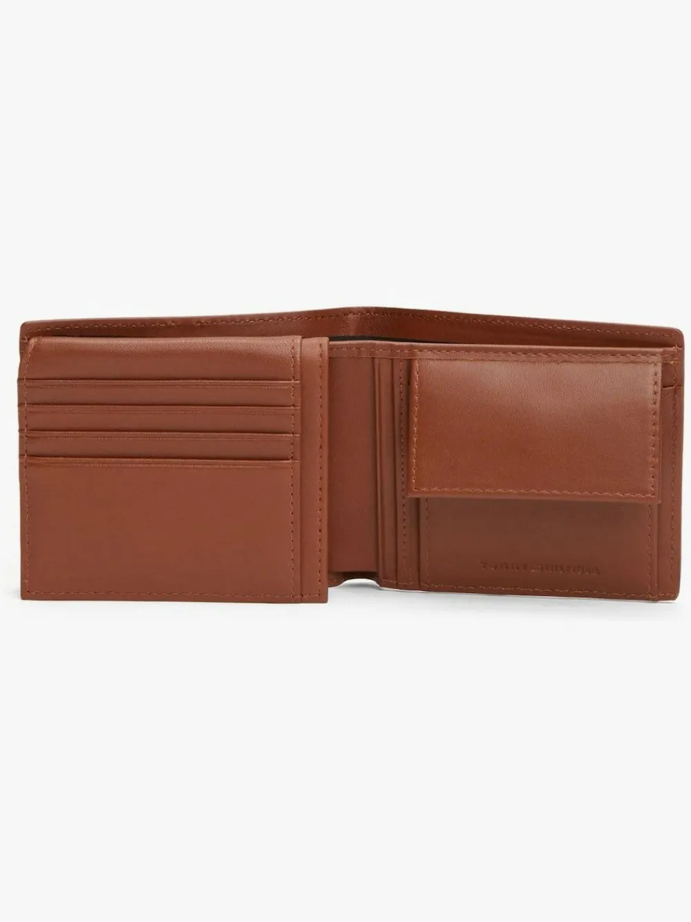 This practical leather wallet exudes sophistication, featuring space for notes, coins and cards – wrapped in understated signature style.Highlights• Leather• Pebble grain finish• Bifold design• One interior billfold pocket• Multiple interior card slots with flap detail• One interior coin pocket• Signature tape on front• Tommy Hilfiger logo debossed on coin pocket• Tommy Hilfiger metallic logo embossed on front• Tommy Hilfiger brandingShape & fit• 11.5 x 2 x 10cmComposition & care• 100% leather 100% Leather.
