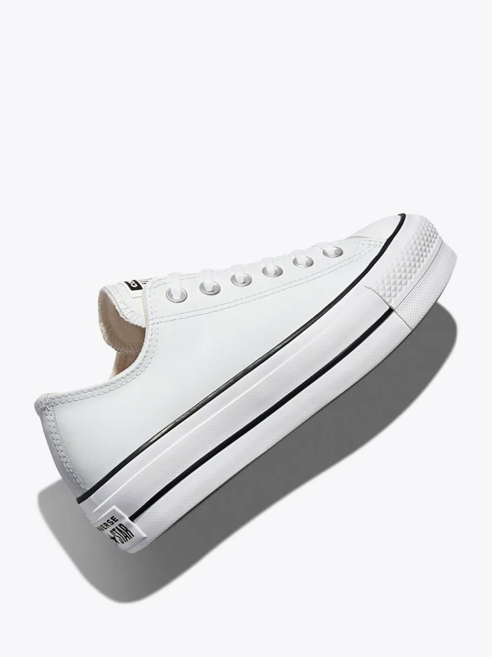 UP HIGH. A premium, leather upper elevates the iconic, low-top look, while a double-stacked sole takes it higher. With classic touches, like a woven ‘All Star’ tongue label, plus a license plate on the heel. EVA cushioning keeps it comfortable. Get lifted. Featuring leather upper, elevated platform sole for added height and lace-up style for an adjustable fit. Upper – Textile, Lining and Sock – Textile, Sole – Other Materials.