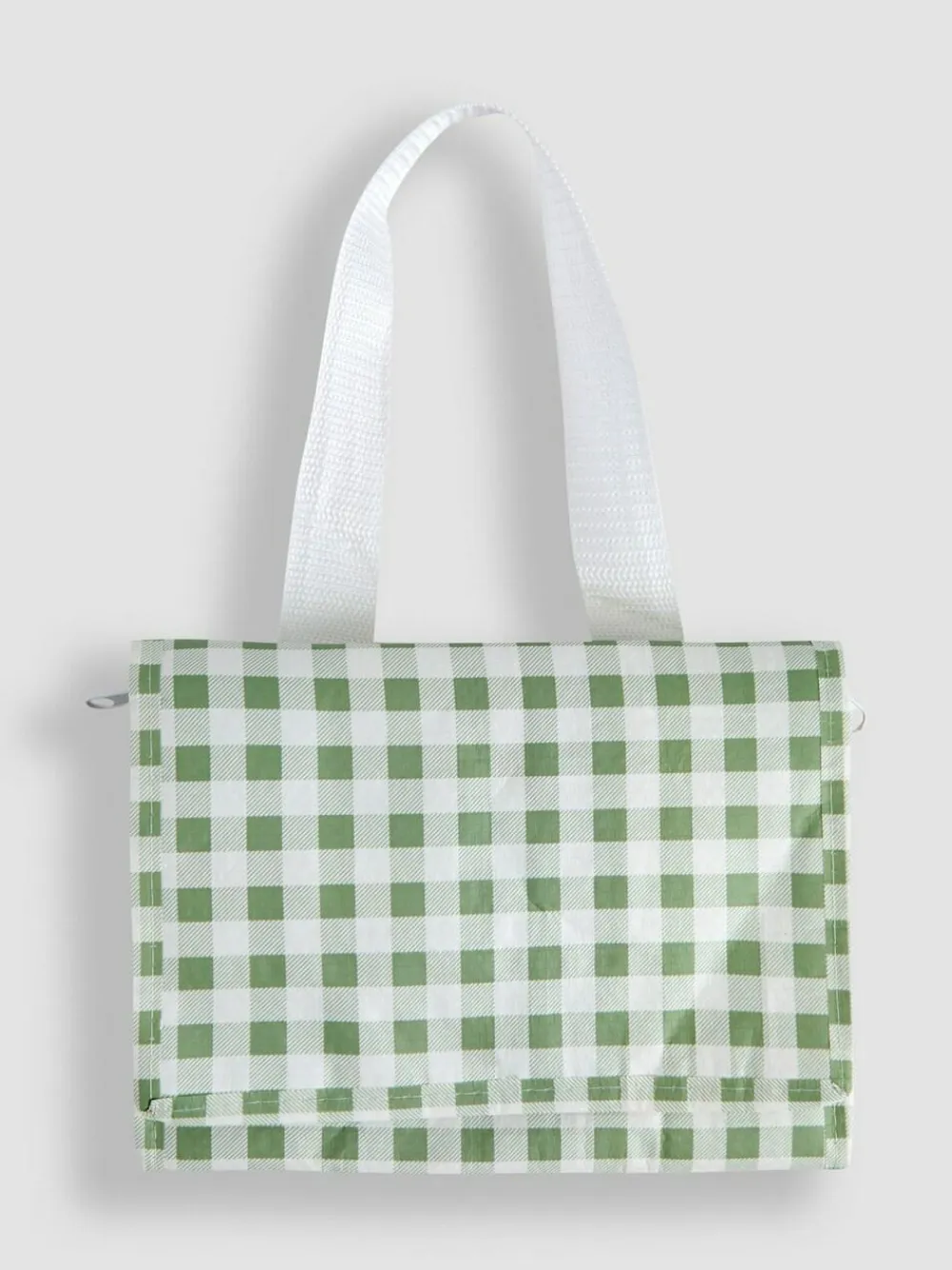 Keep bottles, drinks and snacks cool for when they’re on the go or out at school with this Insulated Food and Bottle Bag. Available in a sage green gingham print with a lightweight and durable design, it’s ideal for those lunch-munching moments, for your little one or for yourself to pop into the buggy. Sage green gingham print Ideal lunch bag Insulated to keep drinks and snacks cool Zip opening Carry handles Name badge inside Folds down flat when empty This product is not a toy Wipe clean only 16 x 21 x 14cm