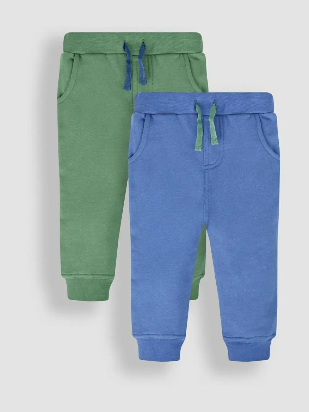 A pair in the wash? Need a spare? These 2-pack joggers in khaki green and blue are the perfect everyday choice for downtime lounging and active adventures. The elasticated waistband and functional drawstring give the perfect snug fit. Just pull on and be playdate-ready in no time. 2-pack joggers in khaki green & blue Stretchy waistband Cuffed legs for a snug, stay-put fit 2 side pockets Contrast drawstring waist for stretch and comfort Machine washable Machine washable. 100% Cotton.