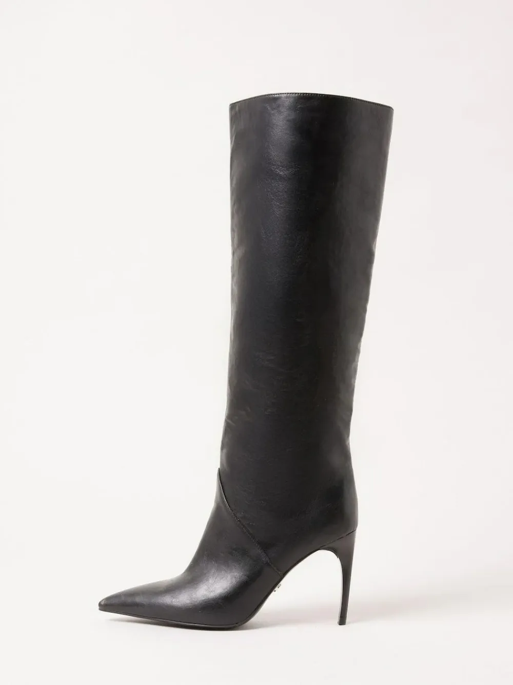 Elevate your evening look with these striking faux leather high leg boots. Featuring a chic pointed toe and a seductive stiletto heel, the tall, straight shaft creates a dramatic silhouette. Perfect for date night or evening dinners, these boots are an essential glamorous statement piece. Faux leather fabric Tall, straight high leg shaft Pointed toe Stiletto heel Perfect for evening wear Heel height 9cm. Upper – Other Materials, Lining & Sock – Textile, Other Materials, Sole – Other Materials.