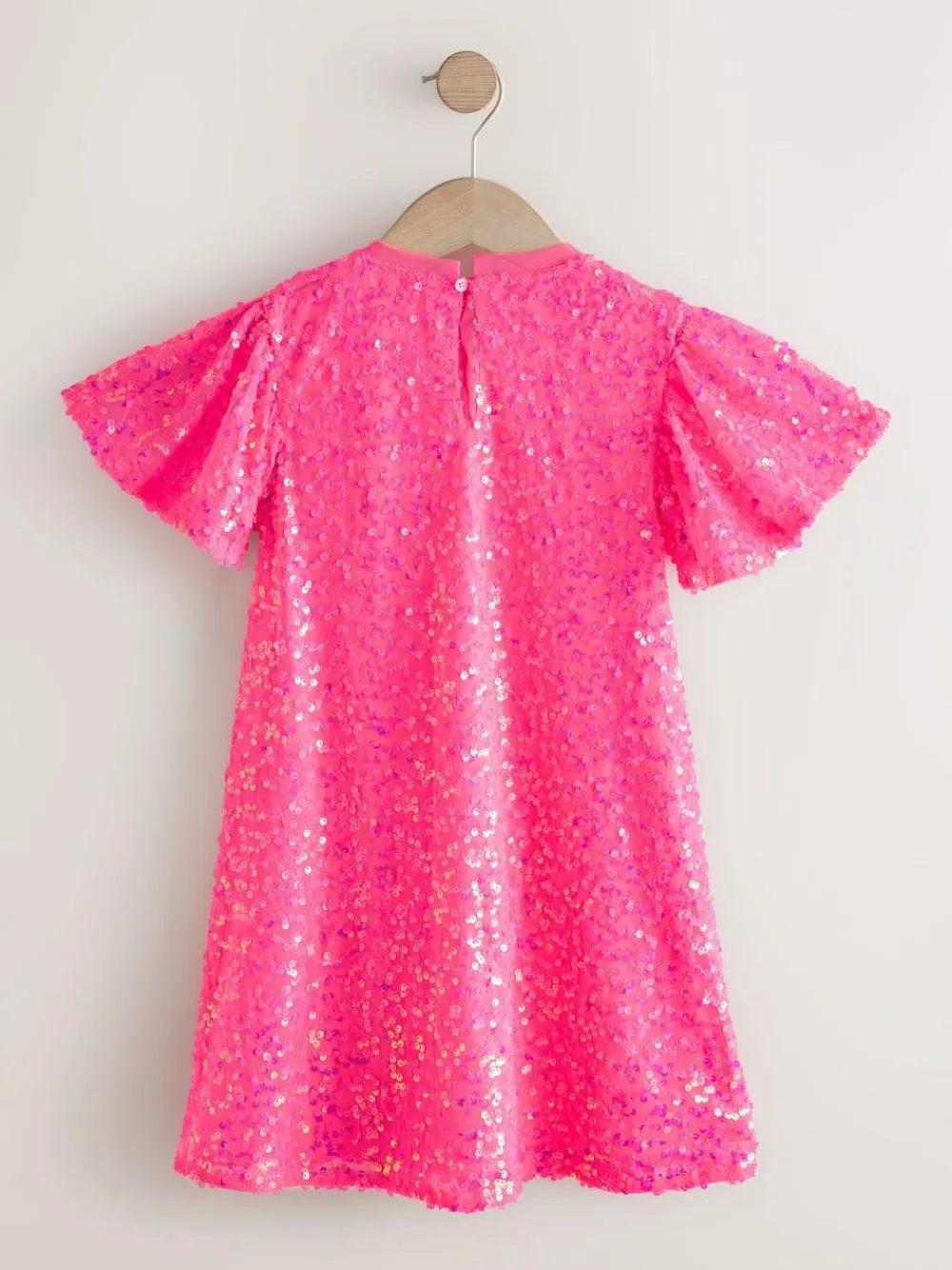Outlet Next Angel Sleeve Sequin Party Dress (3-16yrs) Bright Pink