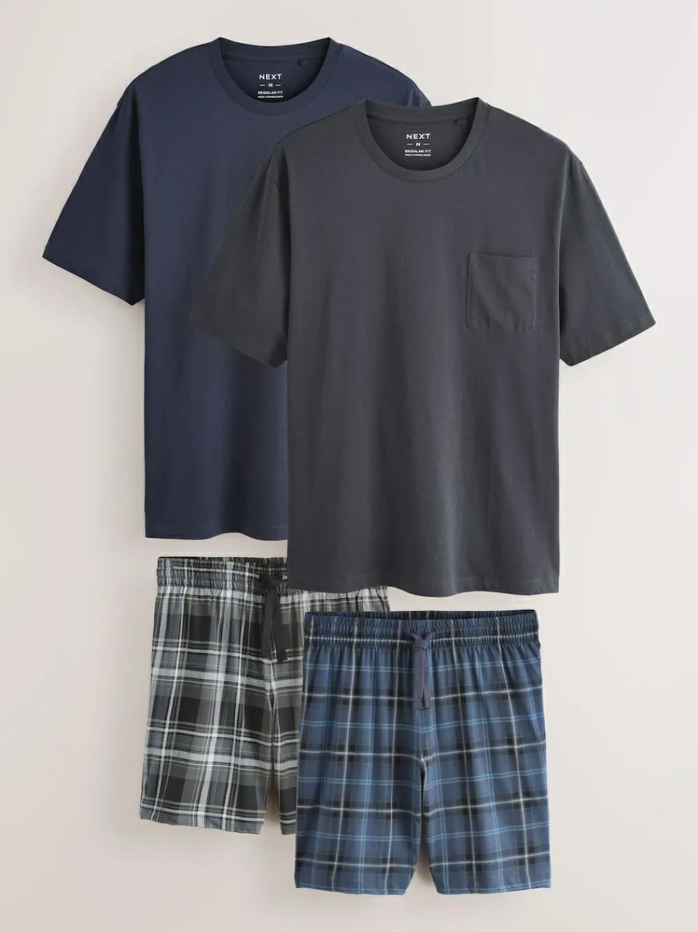 Outlet Next Black/Navy Blue Check Short Sleeve Jersey Pyjamas Set 2 Pack