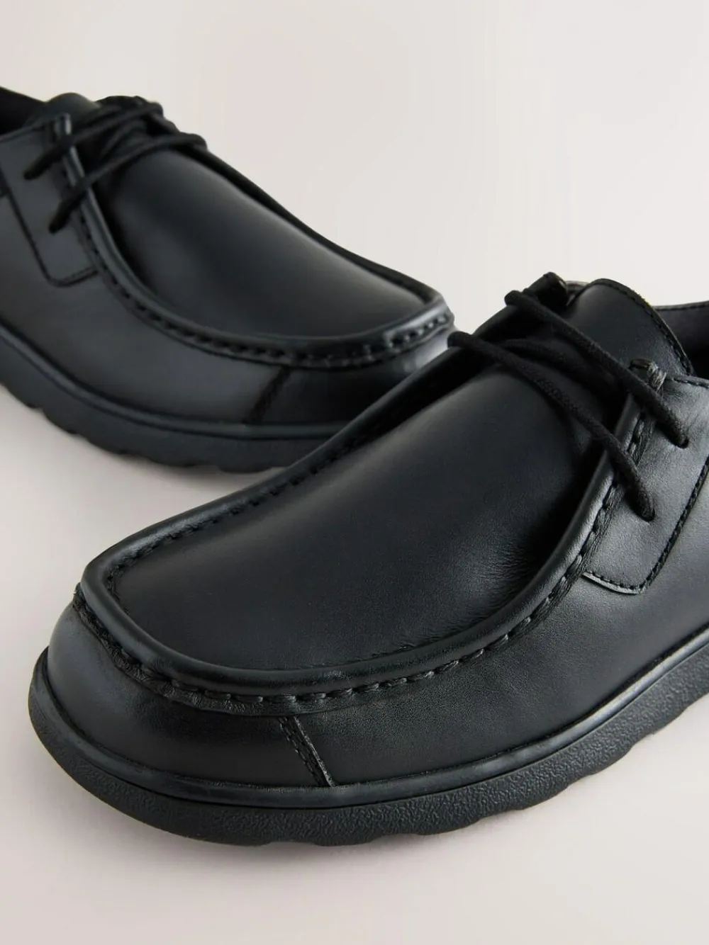 Outlet Next Black Wide Fit (G) Leather Lace Up School Shoes