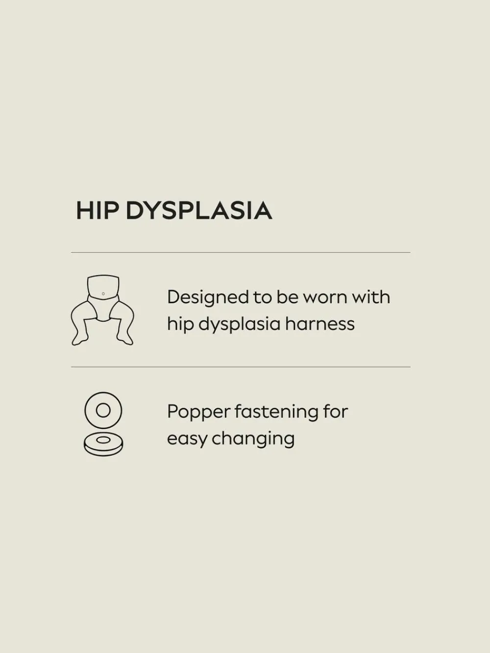 Specially designed to be worn with a hip dysplasia harness. Made in a supersoft cotton fabric with a popper opening for easy and quick dressing. Machine washable. 3 x Leggings 100% Cotton. Warning: Keep away from fire and flames.