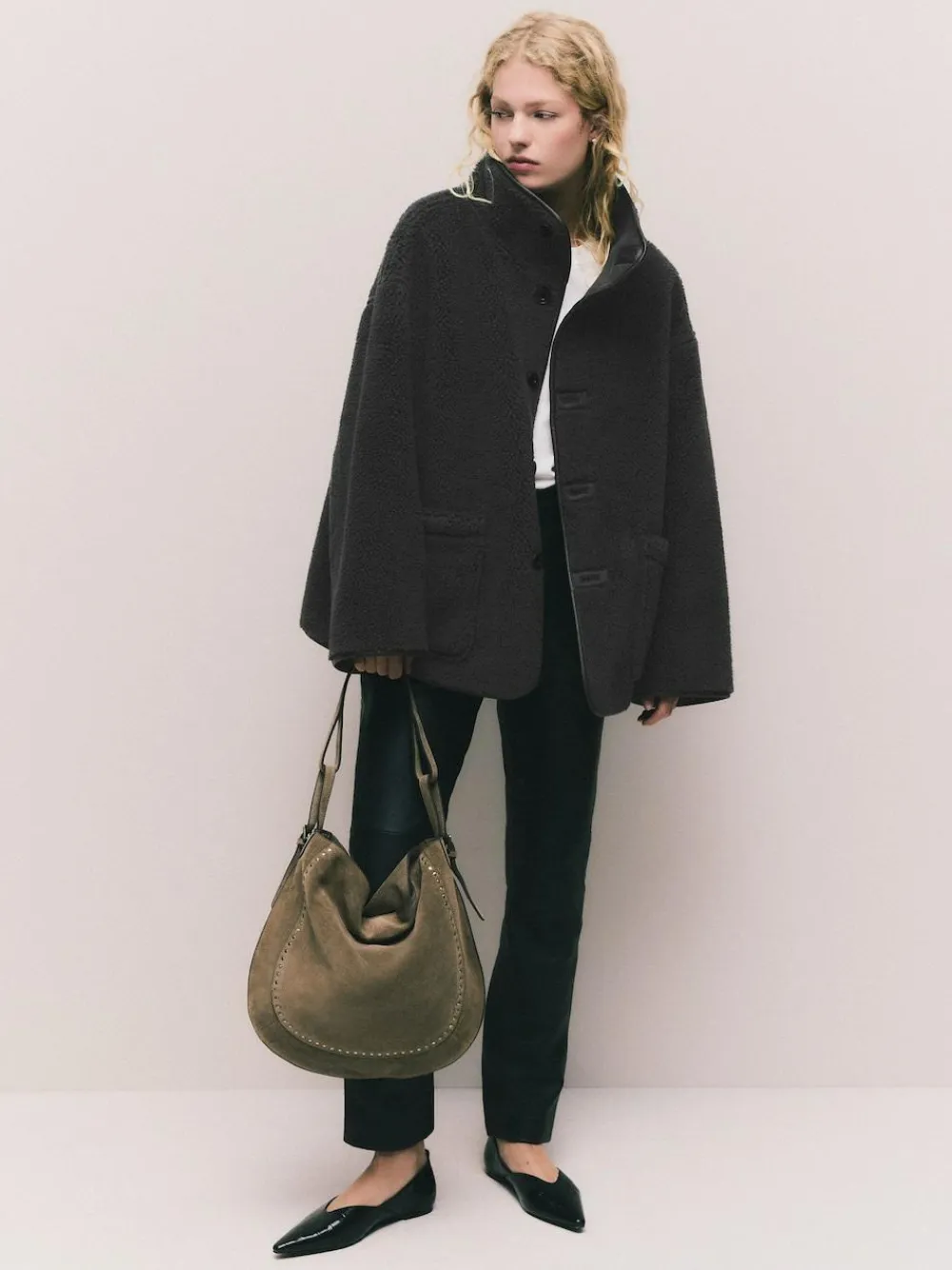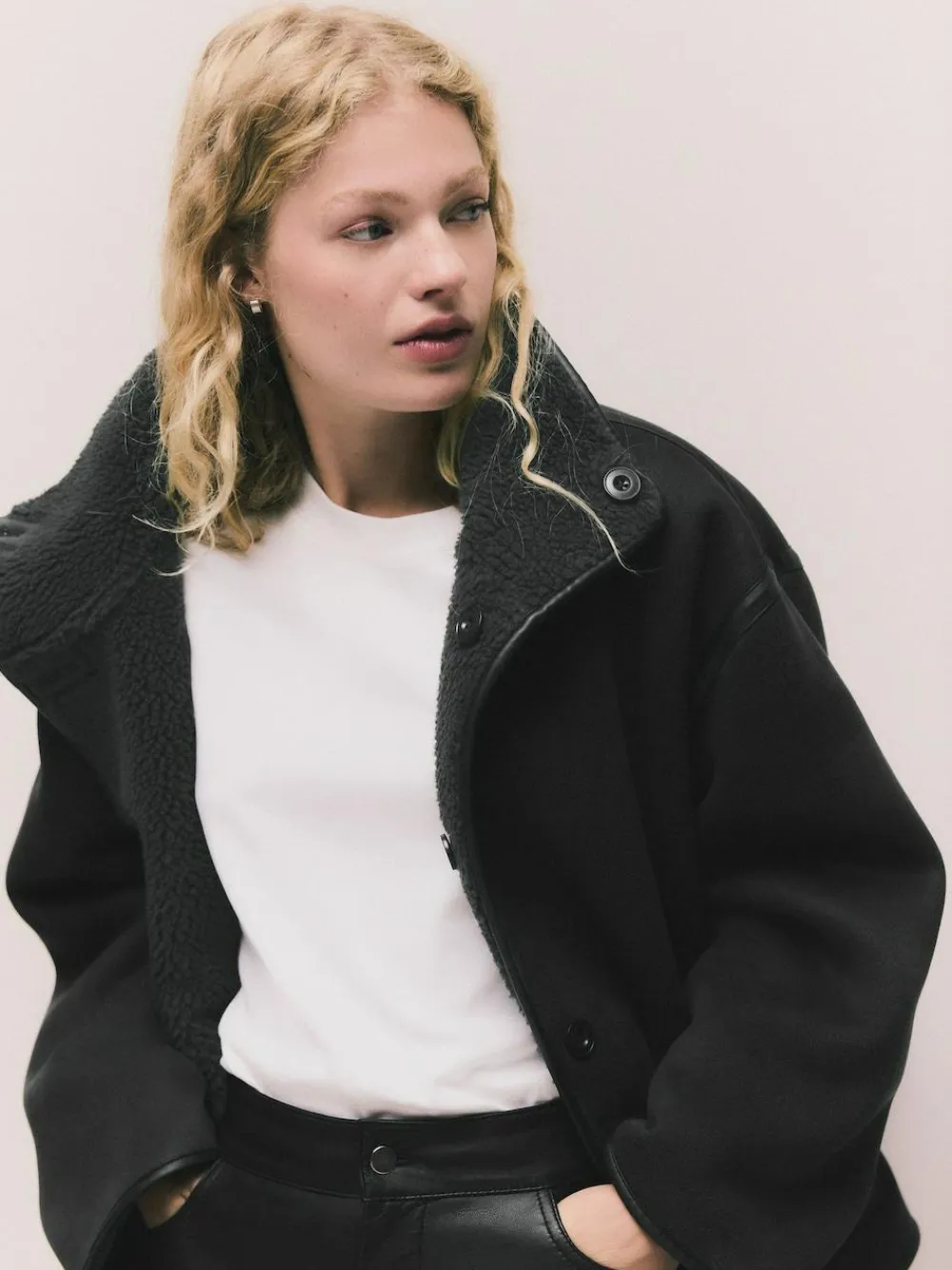 Maximise your wardrobe potential with this versatile reversible jacket. Featuring a cosy borg design on one side and a smooth suedette finish on the reverse, it offers a chic funnel neck and patch pockets. Perfect for stylish, changeable weather. Reversible design Borg fabric Funnel neck Button-up fastening Patch pockets Regular centre back neck to hem 28.5″ / 72cm. Machine washable. 98% Recycled polyester, 2% Elastane.