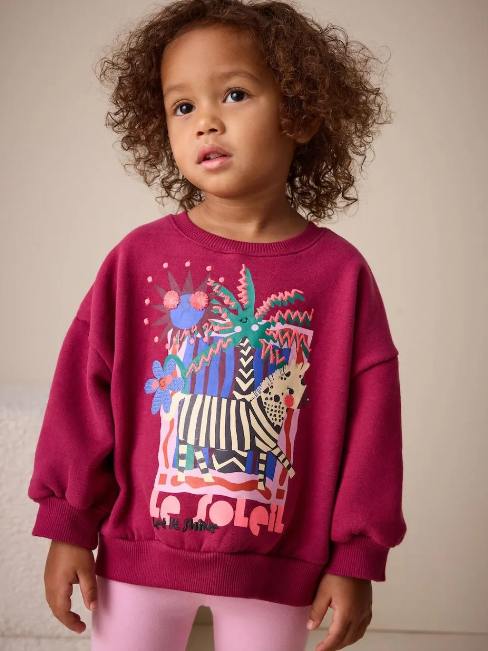 Outlet Next Burgundy Red Zebra Crew Neck Sweatshirt (3mths-7yrs)