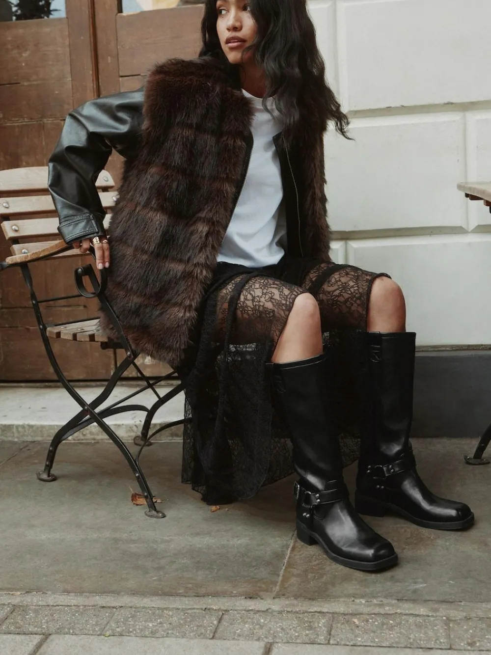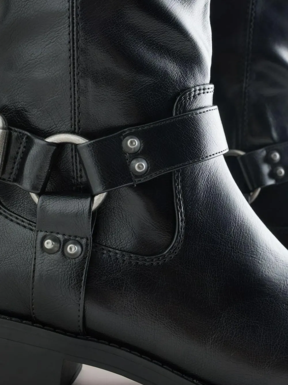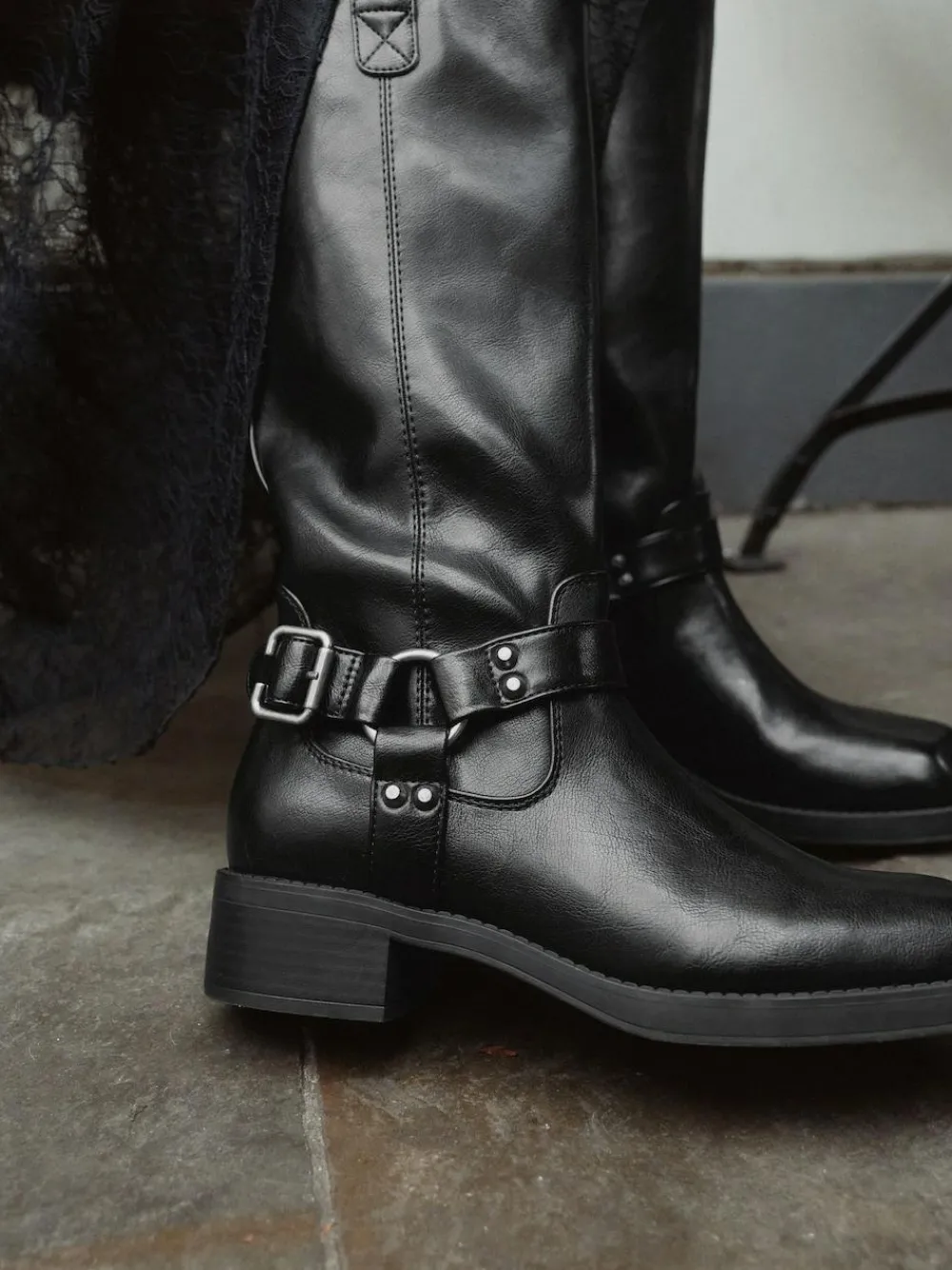 Step into rugged style and comfort with these Forever Comfort® Knee High Biker Boots. Featuring our Forever Comfort® insole, these boots are made for all-day wear. They boast classic biker style with striking hardware harness detailing and a contemporary square toe. Forever Comfort® cushioned insole Hardware harness detailing Pull-on tab Square toe Knee-high length Heel height 4cm. Upper – Other Materials, Lining & Sock – Textile, Other Materials, Sole – Other Materials.