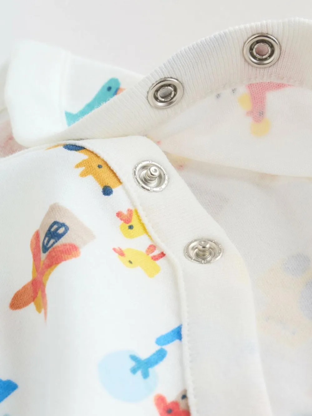 An essential and cheerful foundation for the layette, this Green Farm 5 Pack Short Sleeve Baby Bodysuits set offers excellent comfort and value. Crafted from Super Soft Cotton, these bodysuits feature playful farm-themed prints. Designed for safety and ease, they include an Envelope Neck Opening and a Popper Bottom Fastening, and are guaranteed to contain No Harmful Chemicals or Dyes / Nickel Free Poppers. 5 Pack Bodysuits Super Soft Cotton Envelope Neck Opening Popper Bottom Fastening No Harmful Chemicals or Dyes / Nickel Free Poppers Machine washable. 5 x Bodysuit 100% Cotton. Warning: Keep away from fire and flames.