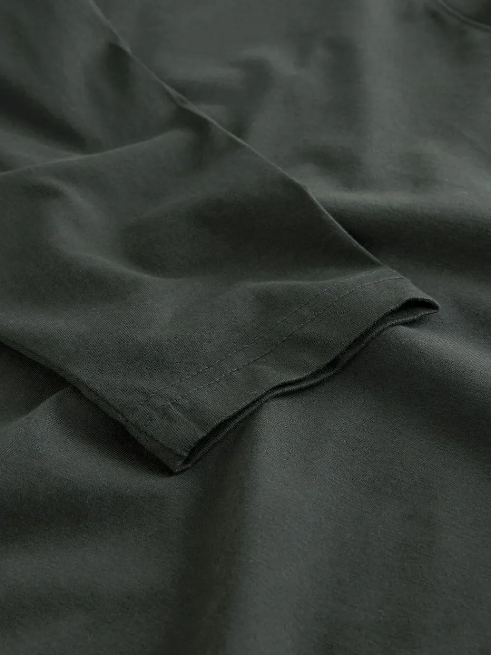 The perfect addition to your transitional wardrobe, our green long-sleeved crew neck T-Shirt makes easy work of layering Made from soft and breathable cotton with a crew neckline in a soft-washed fabric. One to add to your capsule wardrobe Our Essential T-Shirt will provide you with a great fit even after they have been washed as they have been pre-laundered. Long sleeve Crew neck Soft washed fabric Pre-laundered 100% Cotton Machine washable. 100% Cotton.