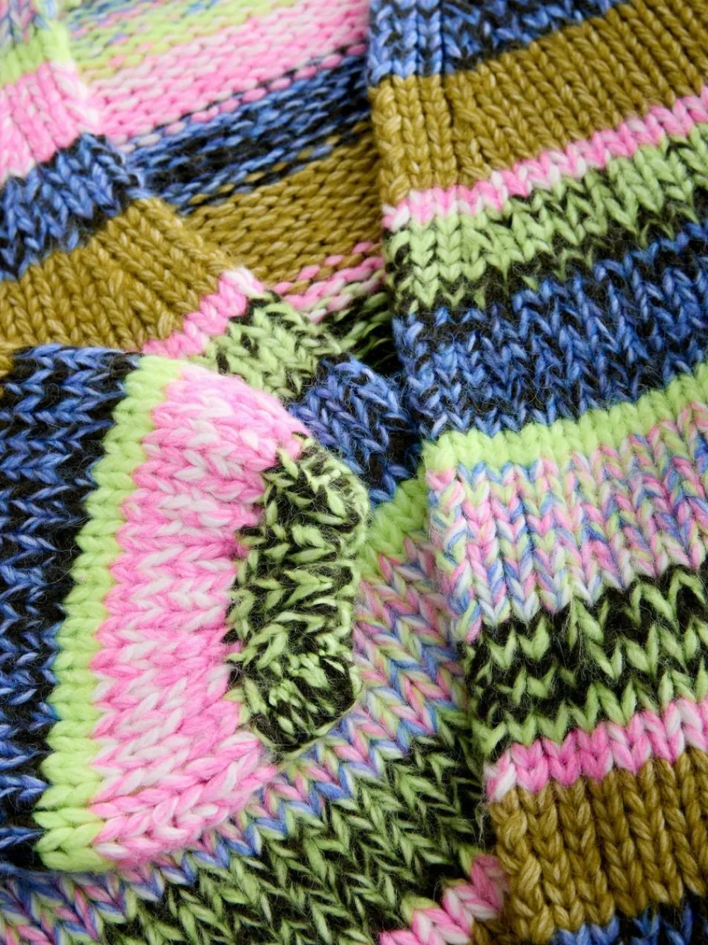 Make a vibrant statement with this multi-coloured chunky knit cardigan. Featuring a bold blue and green stripe pattern, this soft-touch layer is designed with voluminous long balloon sleeves for a modern silhouette. The effortless open-front design makes it a versatile, playful choice for brightening up your casual day-to-night wardrobe. Soft Touch Chunky Knit Stripe Open front/no fastenings Long balloon sleeves Machine washable. 66% Recycled polyester, 24% Acrylic, 5% Nylon, 5% Wool.