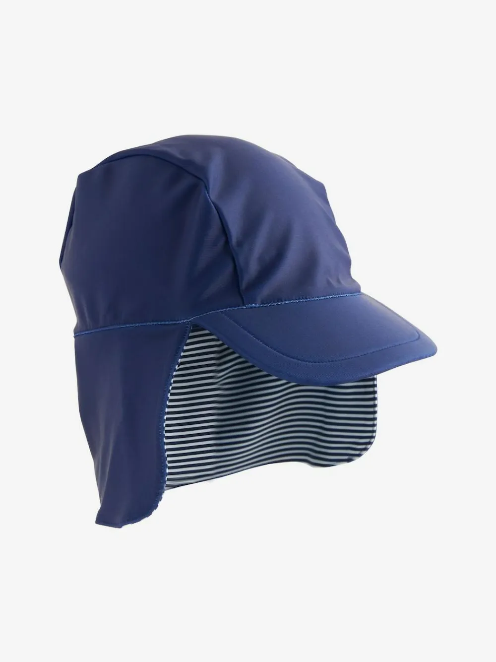 Keep them shaded from the sun with this reversible navy blue Legionnaire swim hat, featuring a curved peak and a neck protector flap that’s ideal for the beach or sunny days out. Reversible Legionnaire shape Curved peak Neck flap Machine washable. 82% Recycled polyester, 18% Elastane. This fabric will provide protection against solar ultraviolet radiation. It has been independently tested and given a UPF rating of 50+ which blocks more than 97.5% of UV rays. Important Advice: • Sun exposure causes skin damage • Only covered areas are protected • Always use a high protection factor sunscreen on any exposed areas of skin • The protection offered by this fabric may be reduced with use or if stretched or wet • Always rinse in fresh water after each use • Young children should be kept in the shade between 11 and 3 • Don’t forget your hat and sunglasses. • Fabric provides UVA +UVB protection from the sun.