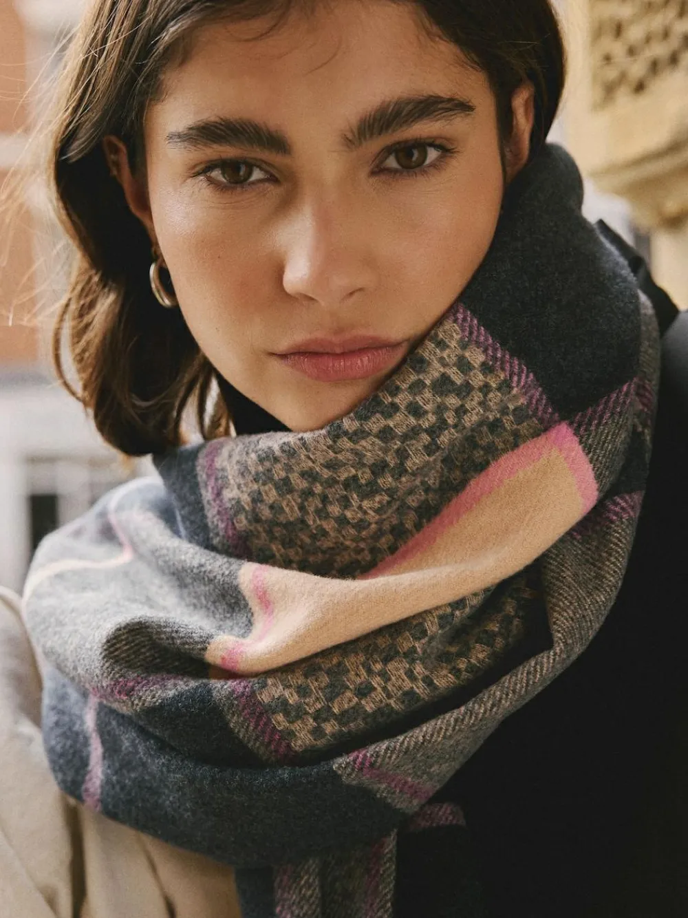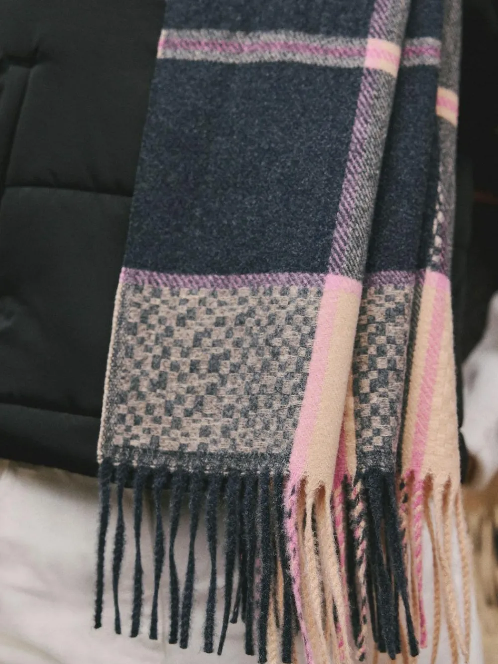 Outlet Next Navy Texture Check Midweight Scarf