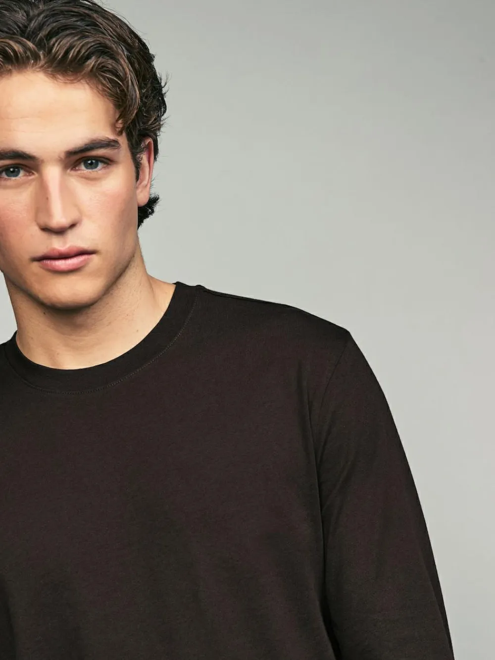 A wardrobe classic you can look and feel great in this neutral 100% cotton long sleeve T-Shirt. This style staple is a great choice for day-to-day casual wear. Pair it with your favourite jeans or cargo trousers for a laid-back weekend look 5 pack Long sleeve 100% cotton Machine washable. 3 x T-shirt TERRACOTTA BITTER CHOCOLATE SANDSTONE 100% Cotton. T-Shirt CHESTNUT 60% Cotton, 40% Polyester. T-shirt ECRU MARL 99% Cotton, 1% Viscose.