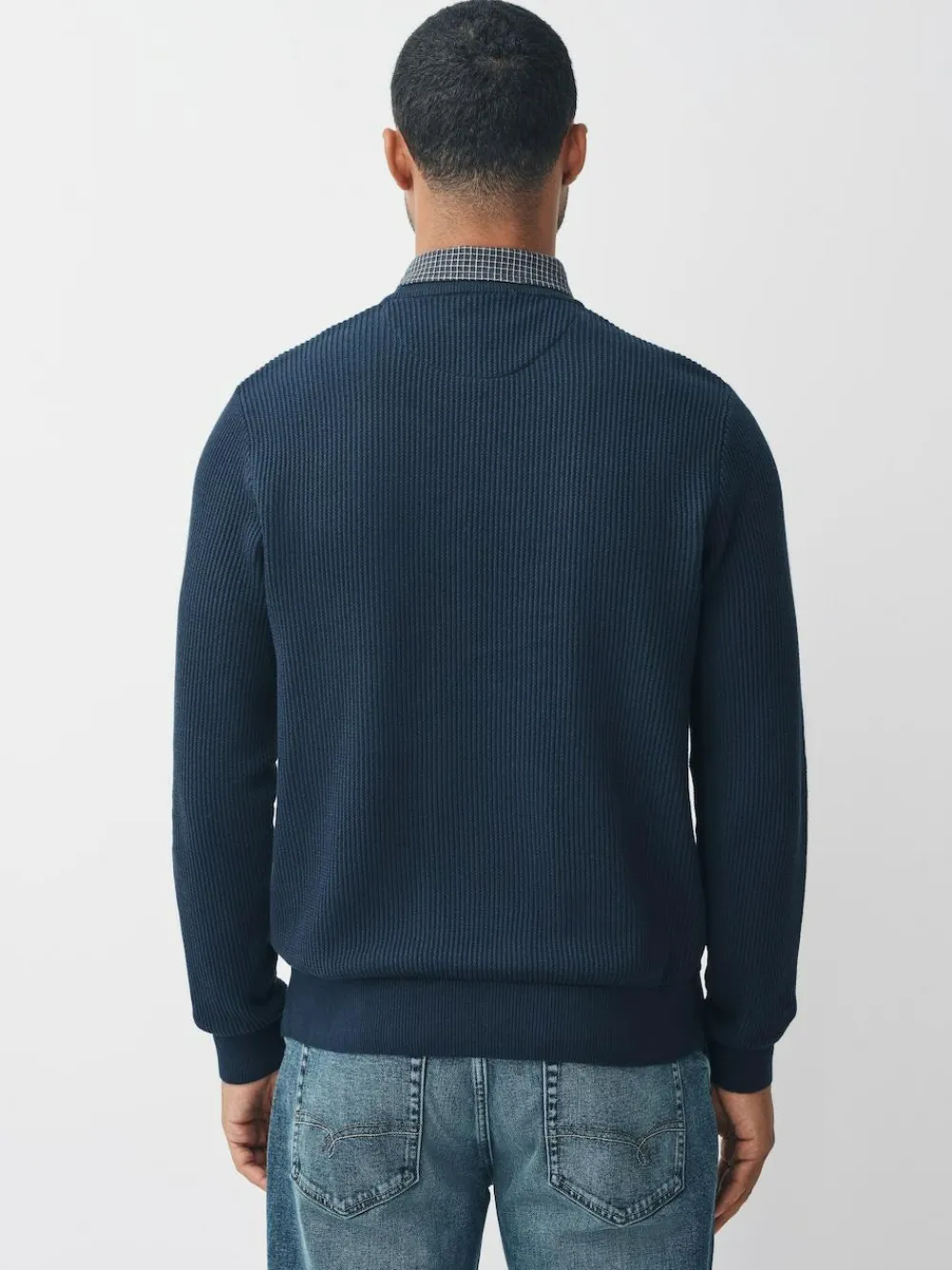 Outlet Next Regular Fit Rib Texture Mock Shirt Jumper Navy Blue