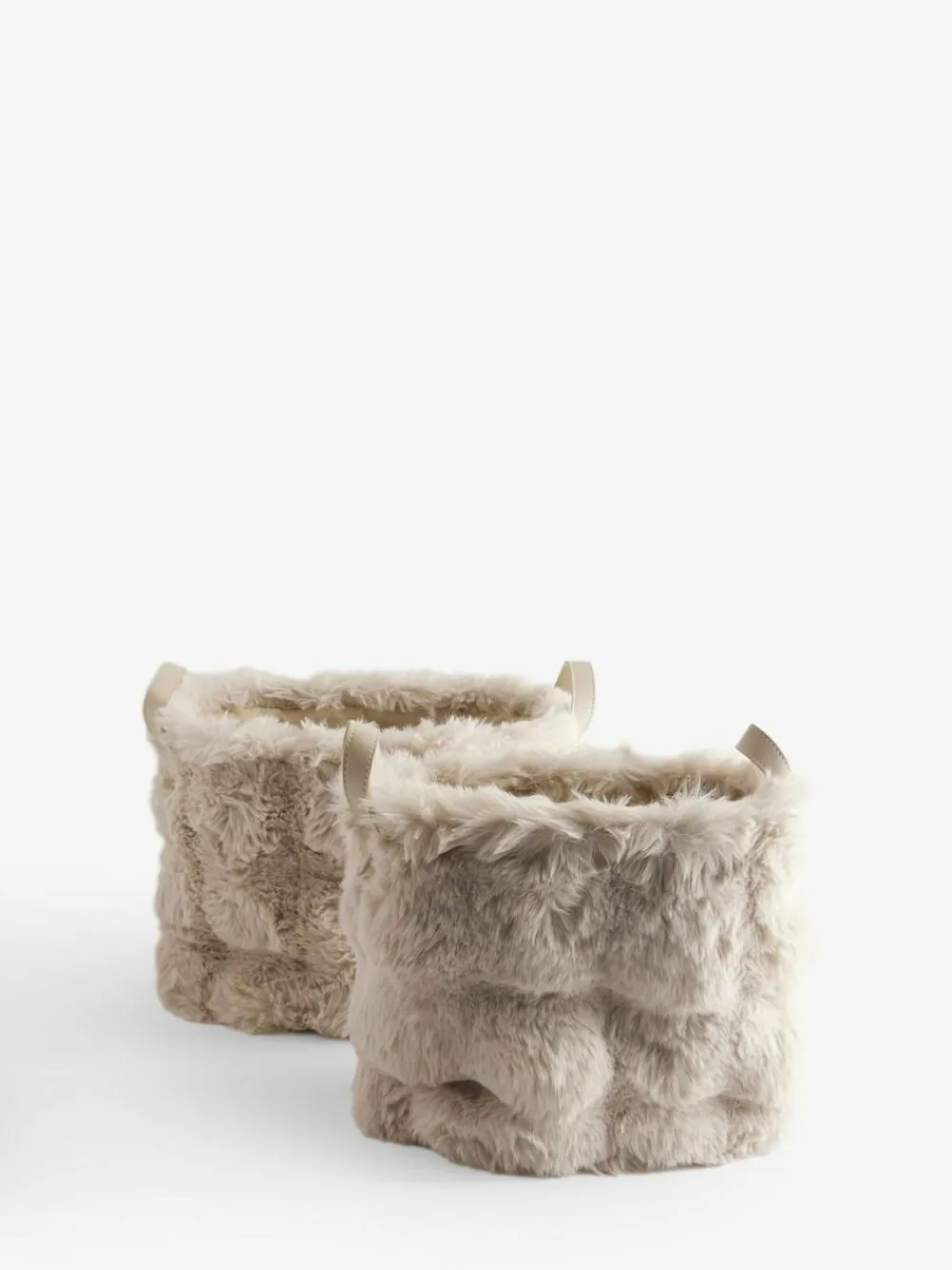 Outlet Next Set of 2 Beige Faux Fur Baskets