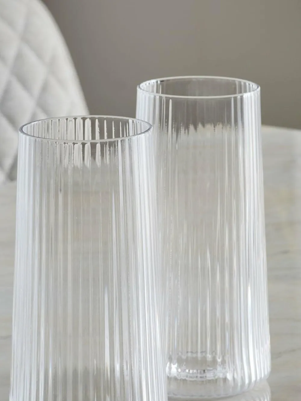 A contemporary twist to your glassware collection, the Hollis Angular range features a ribbed pattern and comes in a beautful modern angled profile. These tumblers are perfect for everyday use and can also be used for cocktails. Featuring a slight weighted base, these glasses are practical and stylish. Height 16cm Dishwasher safe. 100% Glass.