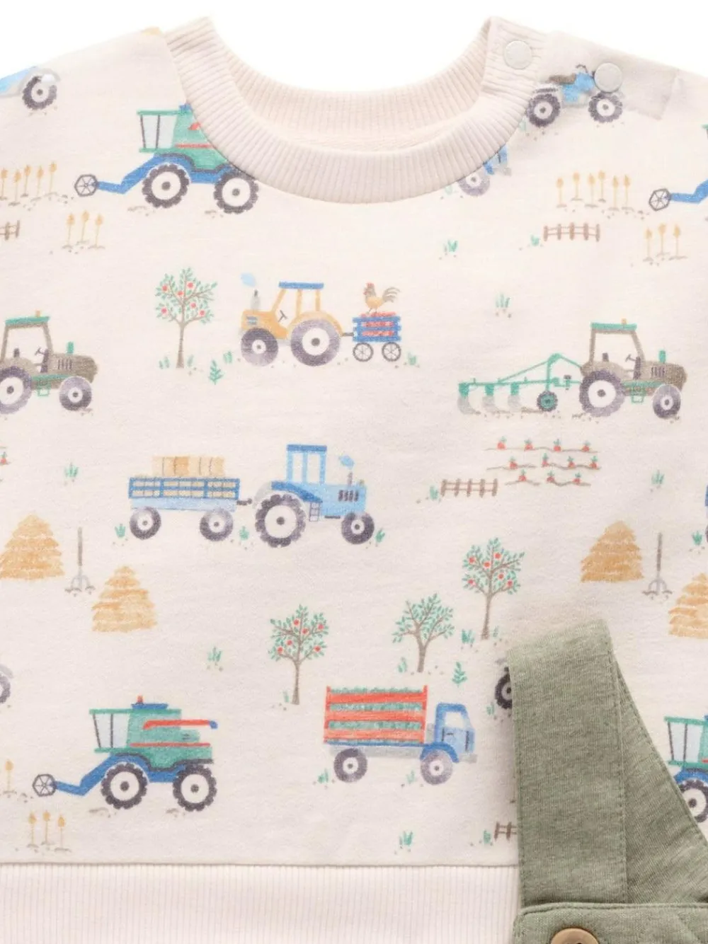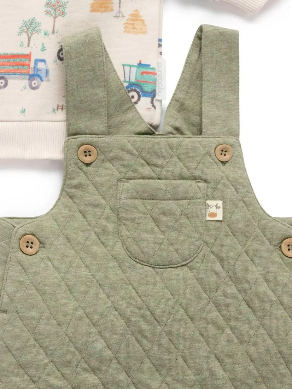 Our Windcheater Overall Set is the perfect 2 piece for winter play. Featuring our comfy, quilted overalls with adjustable straps, and a printed fleece windcheater for layering. Wear together, or mix and match with your other items. 2 piece set, Quilted and wadded overalls, Adjustable straps and wood look buttons, Snap clips on the inner leg for easy dressing, Windcheater with elasticised ribbed trims to keep out winter chills. Machine washable. 75% Cotton, 25% Polyester.