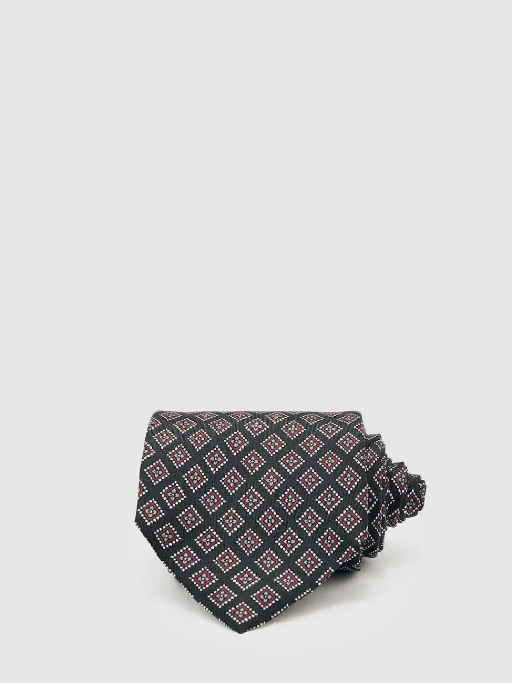Outlet Reiss Bortolo Silk Floral Medallion-Print Tie Charcoal/Bordeaux