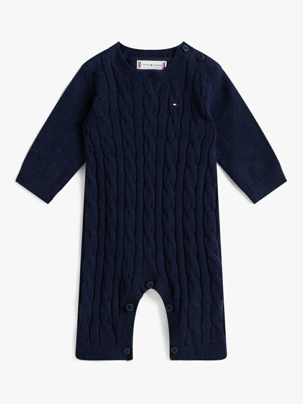 This cable knit coverall is made in a snuggly relaxed fit and features handy button fastenings for easy changing.Highlights• Cotton blend• Cable knit on body and legs• Rib-knit collar and cuffs• Button fastening on shoulder and gusset• Tommy Hilfiger branding• Tommy Hilfiger flag embroidery on chestShape & fit• Relaxed fit• Long sleevesComposition & care• 55% cotton, 24% nylon, 21% acrylic Machine washable. 53% Cotton, 24% Nylon, 23% Acrylic.