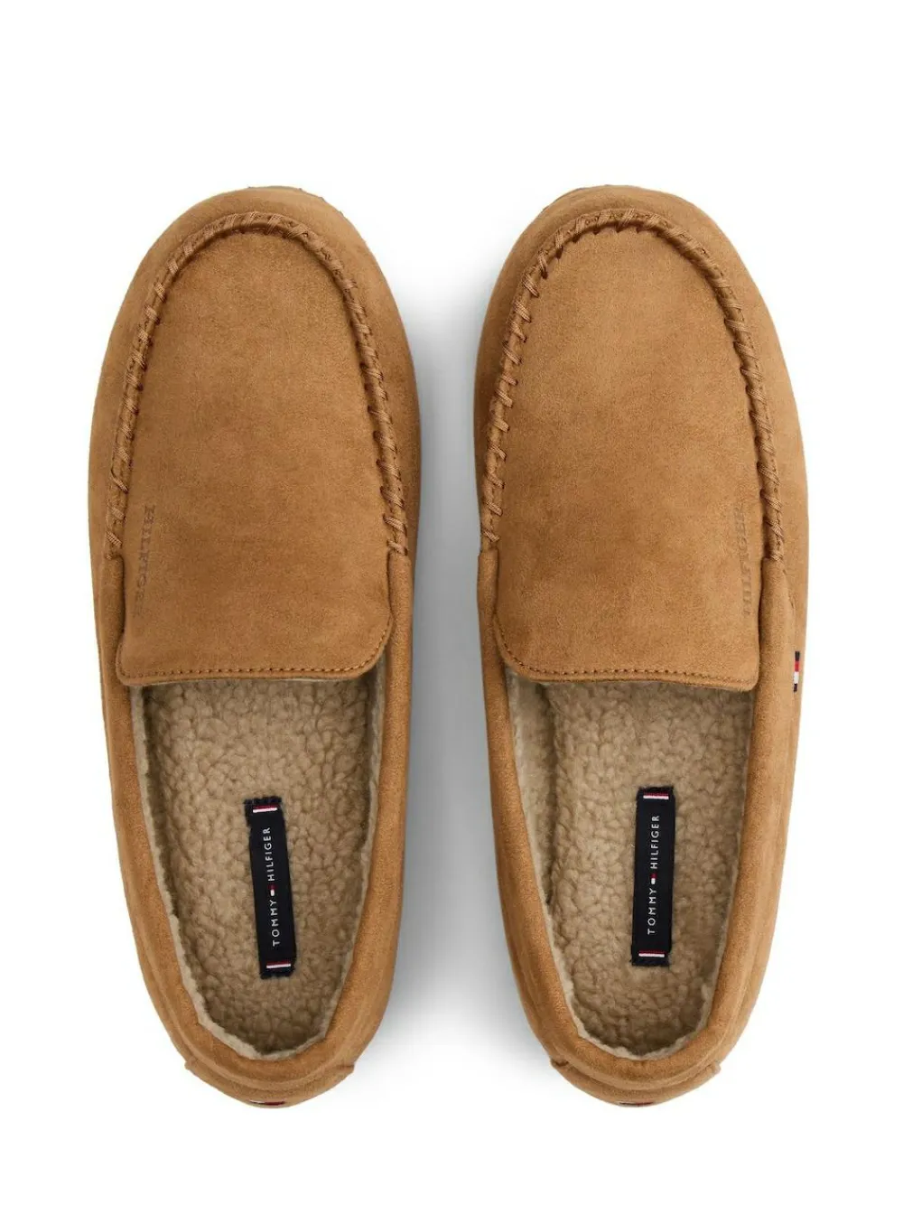 A sophisticated style for relaxing at home, these driver-style slippers are complete with fleece linings for extra warmth. Highlights Microsuede upper Polyester fleece lining EVA outsole Warm lining Signature detailing on side Hilfiger monotype logo on side Tommy Hilfiger branding Shape & fit Slip-on. Main – 100% Other fibres. Lining – 100% Other fibres. Sock – 100% Other fibres.