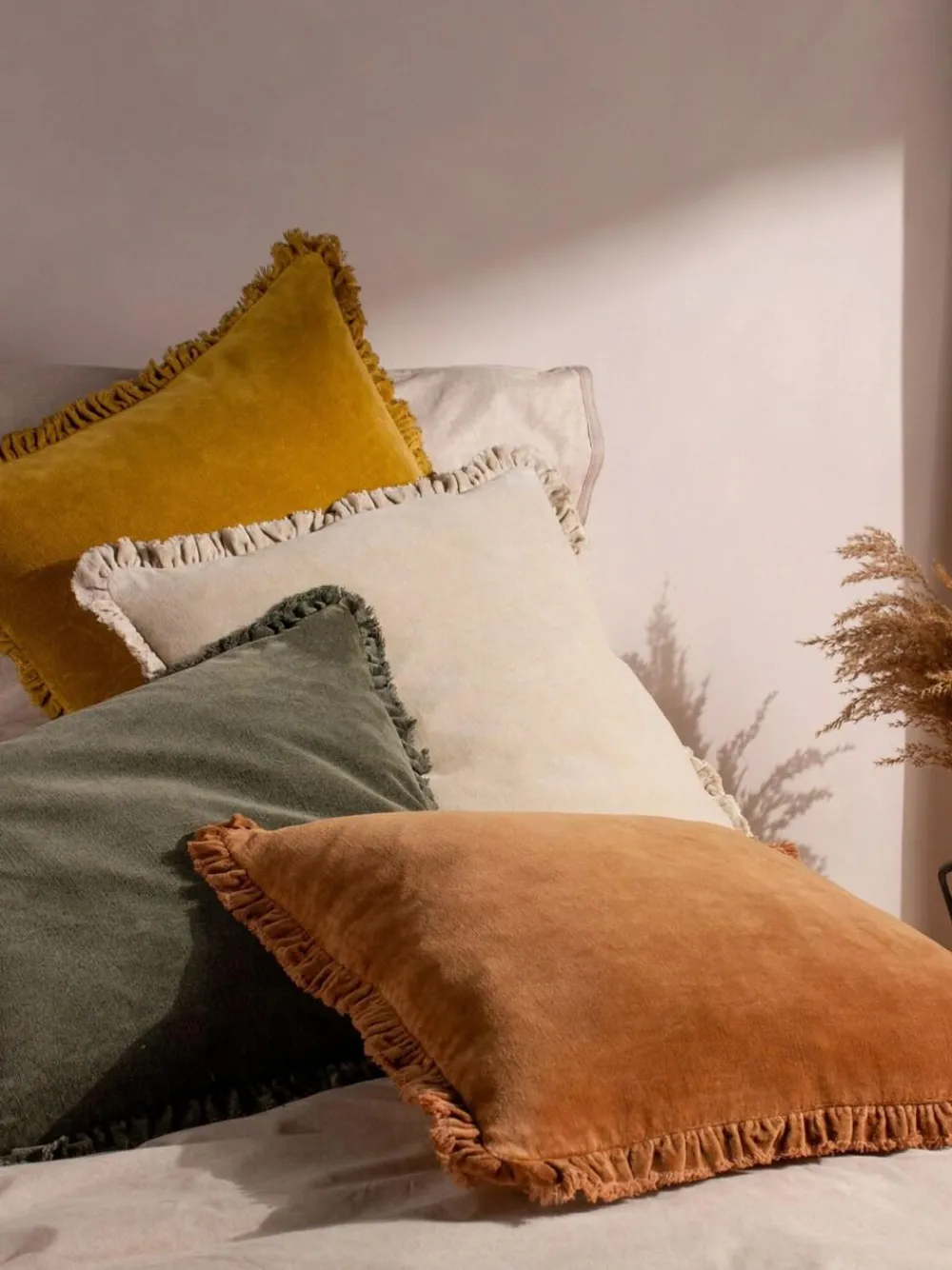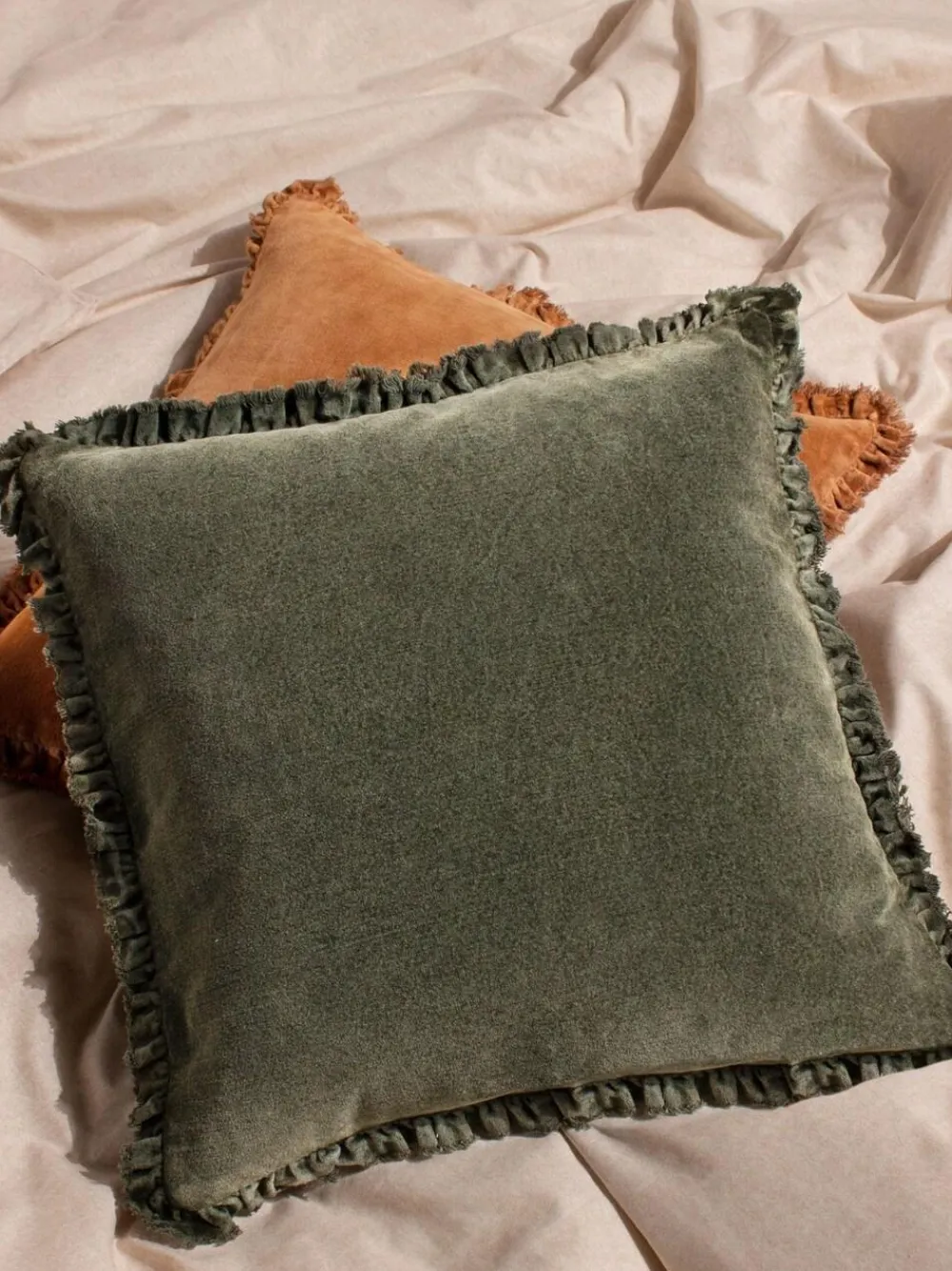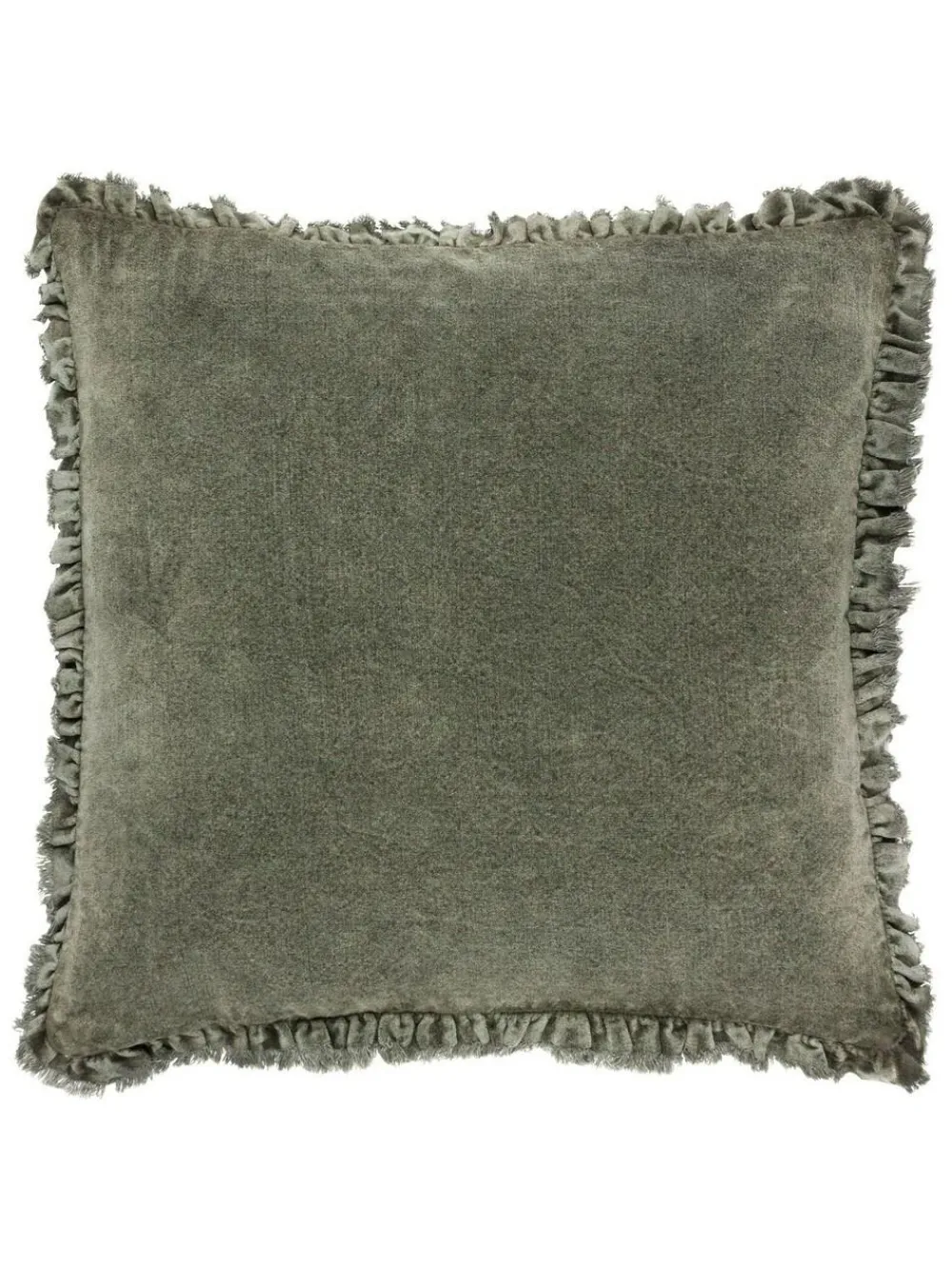 Outlet Yard Bertie 100% Washed Cotton Velvet 45 x 45cm Cushion Moss Green