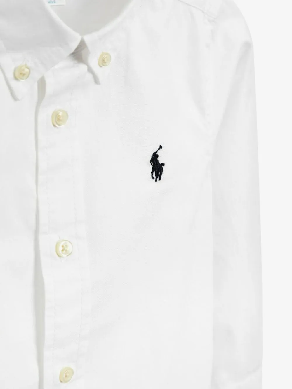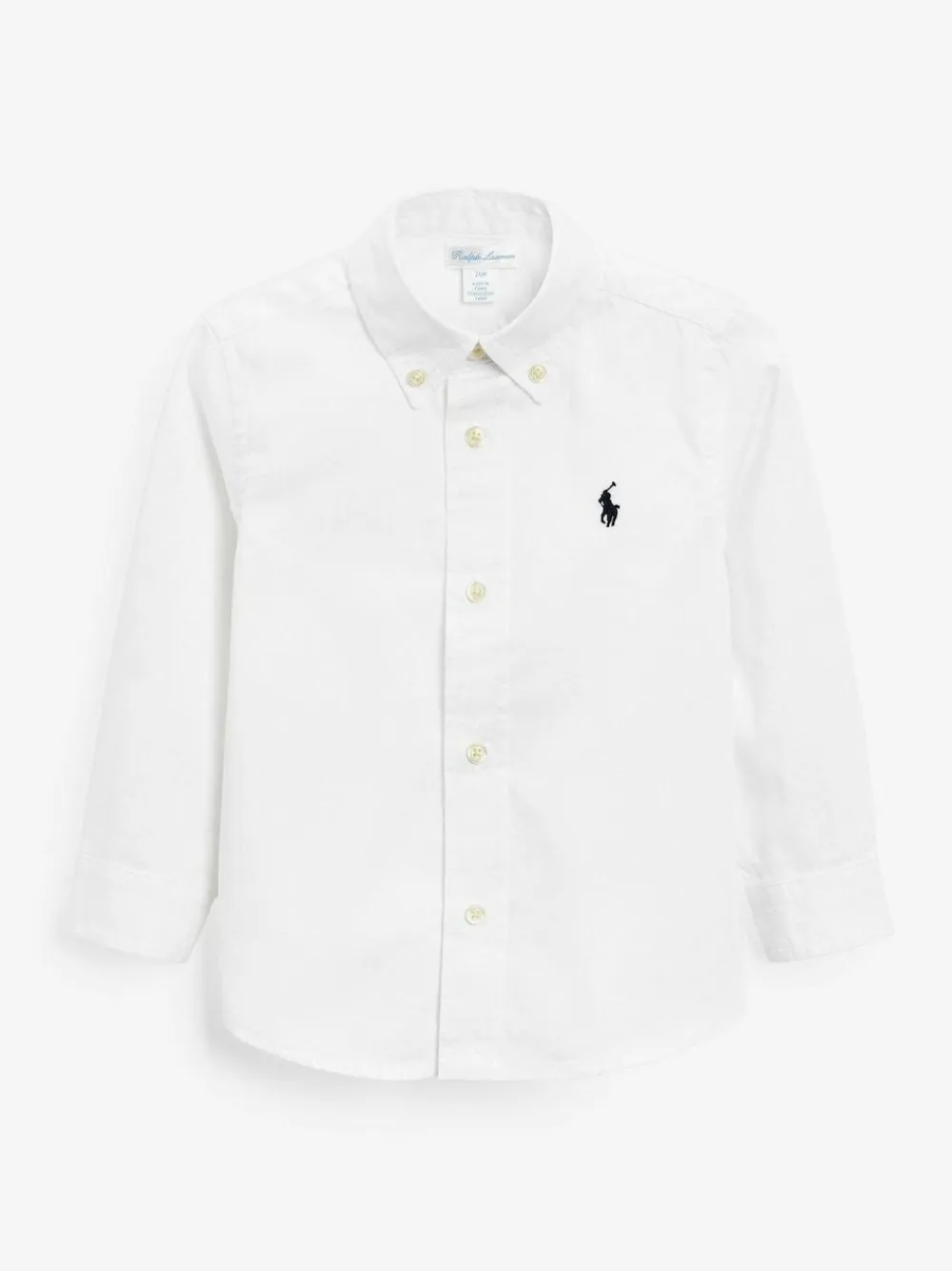 A super-cool go-to for stylish little ones, this Ralph Lauren Oxford white shirt is designed in a classic shape with a pointed collar, button fastening and the signature Ralph Lauren embroidered pony. 100% Cotton.