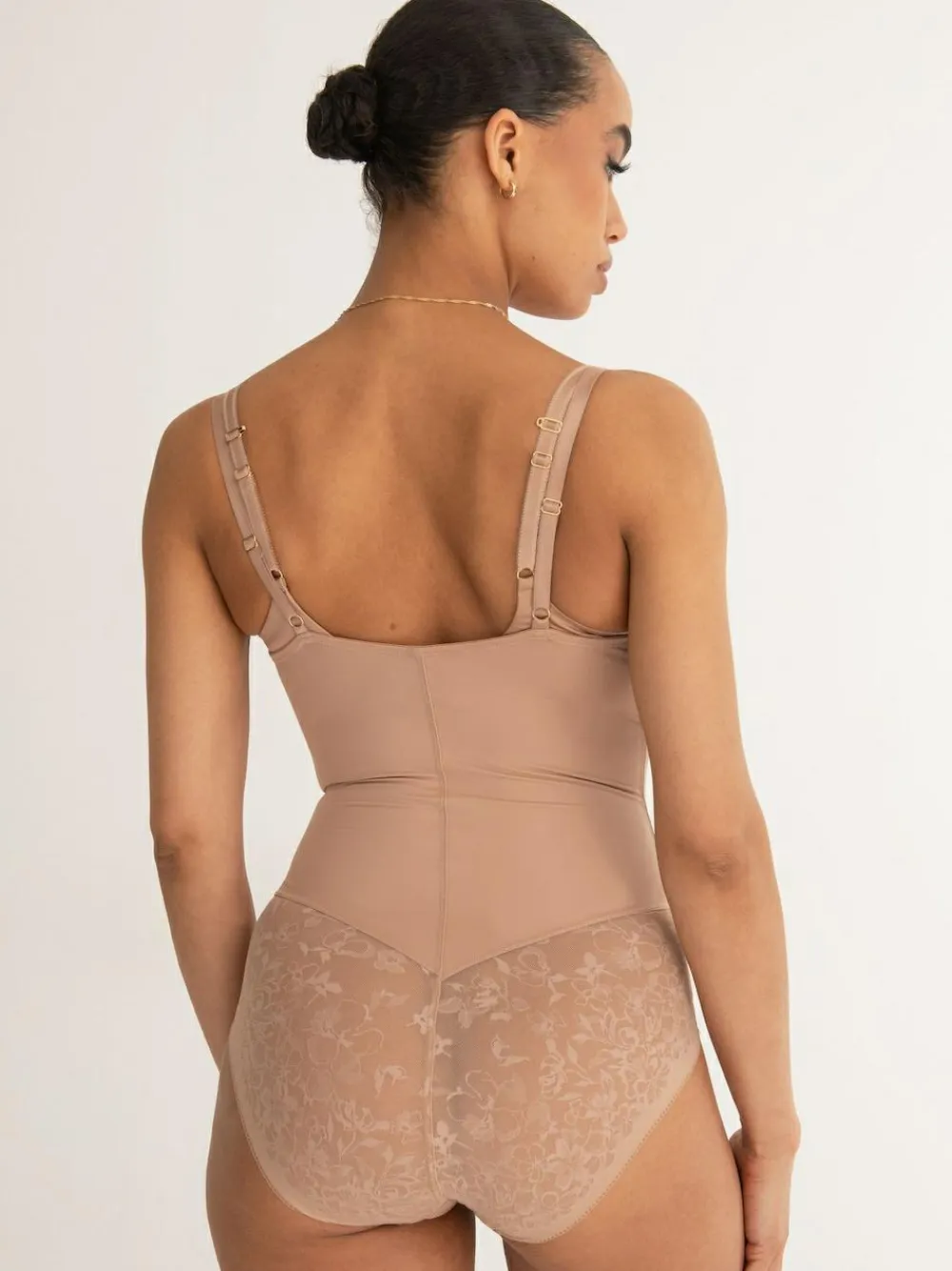 Discover unparalleled comfort and confidence with the Effortless Shapewear Tummy Control Wear Your Own Bra Body – the epitome of seamless shaping that adapts to your beautiful figure. Crafted for comfort and style, this shapewear body features built-in tummy control and four-watch stretch fabric allowing you to move freely while maintaining effective control and support. Combining firm control with exceptional stretch and recovery, this shapewear body with soft to the touch fully adjustable straps adapt to your body’s movements, providing a comfortable fit throughout the day. With a super high-waist design that sits underneath your bra this control body is adorned with invisible floral fabric and floral detailing on the leg line and back, placed perfectly to ensure a smooth leg line with no VPL. Wear the Effortless Shapewear Tummy Control Wear Your Own Bra Body with a bra from the Effortless collection for a flattering finish that complements your outfit seamlessly. Hand wash only. Main 61% Nylon, 39% Elastane. Gusset 100% Cotton.