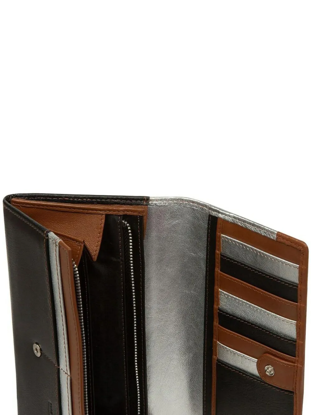 The Mia leather purse from Pure Luxuries London is a must-have thanks to plethora of storage features including twelve card slots which line the interior of this bi-fold design. This purse is secured with a press stud fastener and also has the perfect place for notes and receipts thanks to four slip pockets across the interior and exterior. A zip round coin pockets opens to reveal an accordion style section which expands and is complemented by a rear zipped pocket. This stylish accessory is finished with the Pure Luxuries logo blind embossed both on the exterior and interior for an elegant finishing touch. Height 12cm Width 19cm Depth 2cm Main 100% Leather. Lining 100% Cotton.