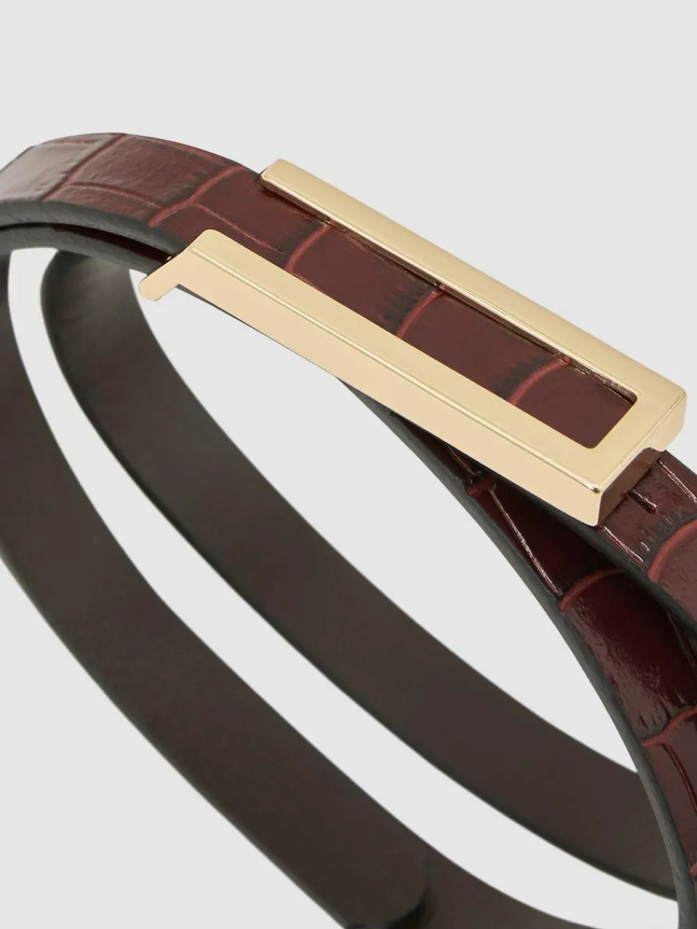 The Bronya belt is crafted from leather with a crocodile-effect finish. Its gold-tone slide-through buckle lends a polished accent to everyday looks100% leatherCrocodile effectGold-tone slide-through bucklePush-pin fastening Width 3.5cm 100% Leather.