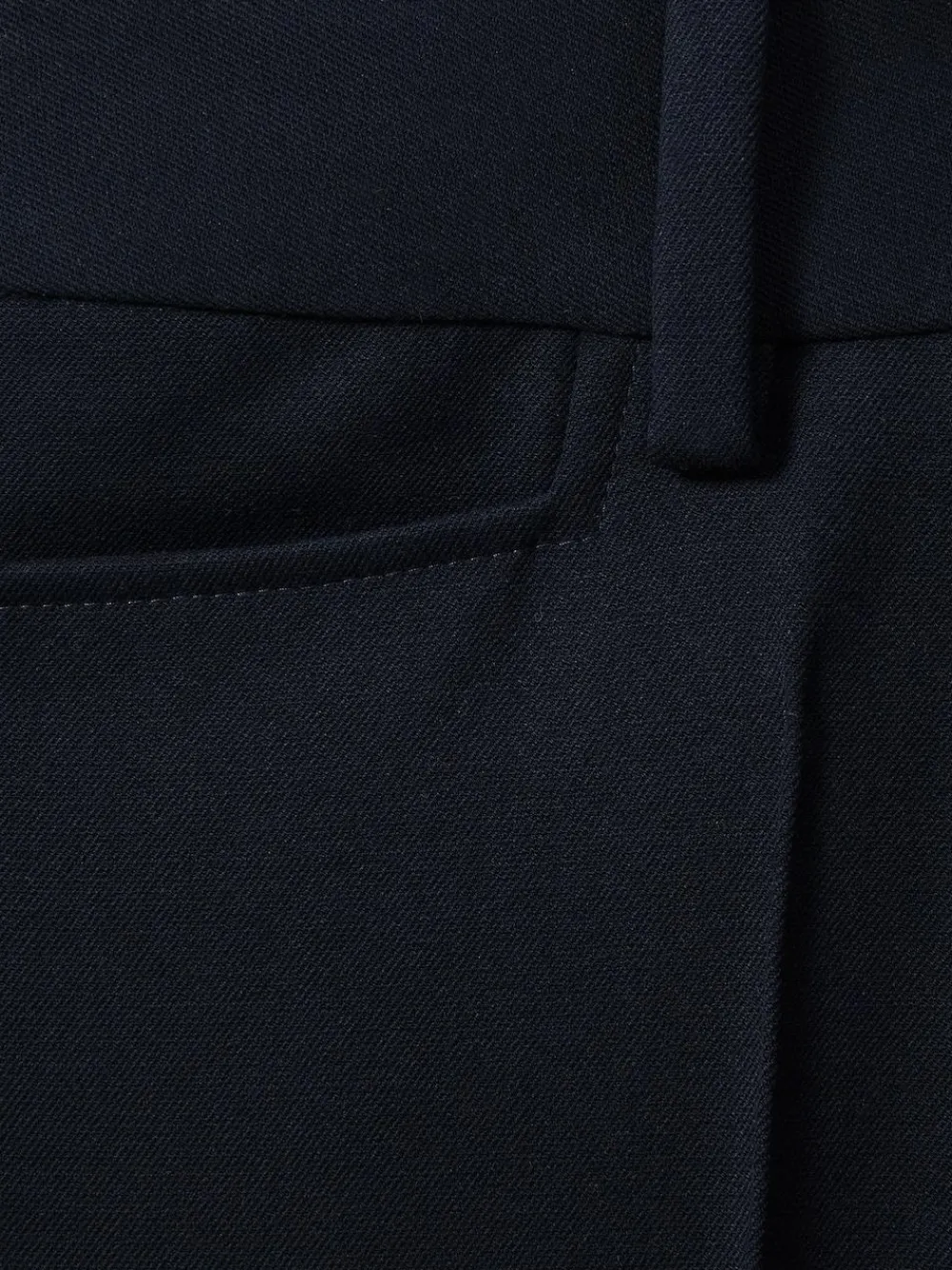 The Navy Gabi suit trousers are designed with flared hems, crafted from a smooth-feel fabrication for a natural fluidity. Matching blazer Mid-rise Side pockets Pressed creases Flared The model is wearing a size 8.Measurements of model: Height 5ft 10” / 177.8cm. Do not wash. 67% Polyester, 28% Viscose, 5% Elastane.