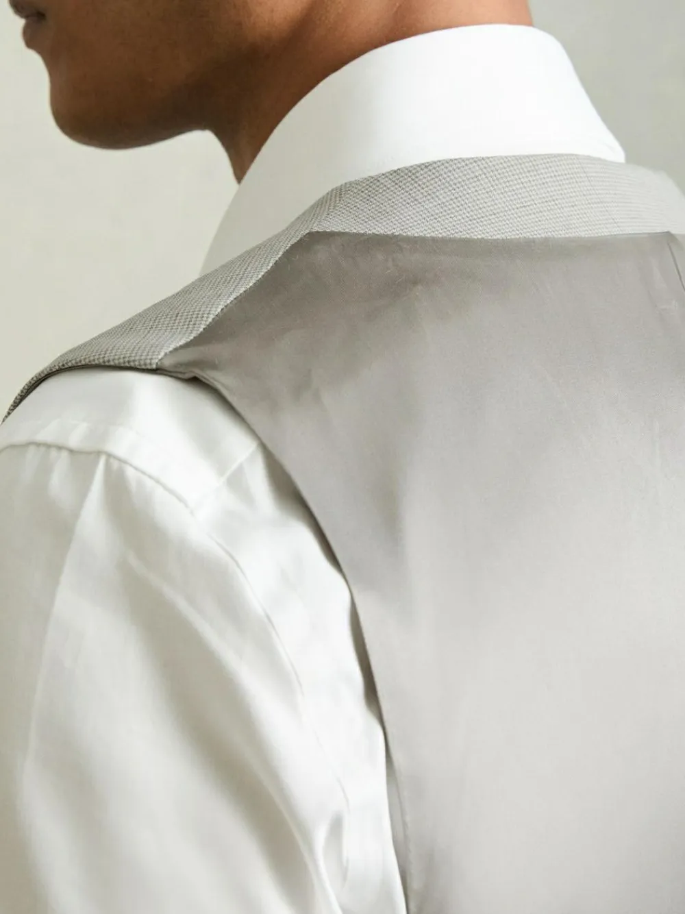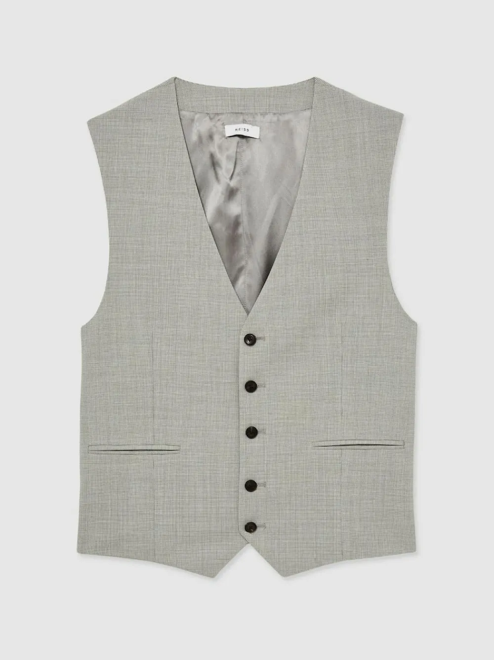 Reiss Grey Slice Puppytooth-Check Suit Waistcoat Wool-Blend^ Vests