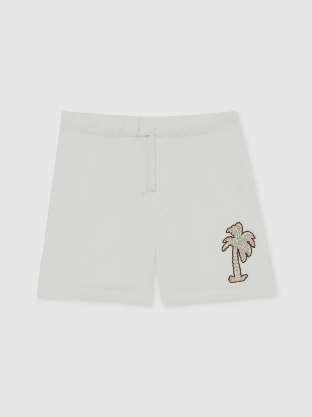 The Kayo shorts are crafted from a soft cotton-blend jersey, designed with a drawstring waistband for relaxed comfort. An embroidered palm tree motif at the leg brings a tropical twist to the casual style. Cotton-blend jersey Palm embroidery Elasticated drawstring waist Side slip pockets Machine washable. 78% Cotton, 22% Polyester.