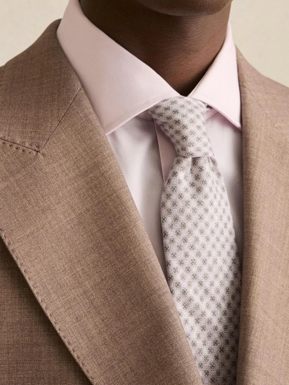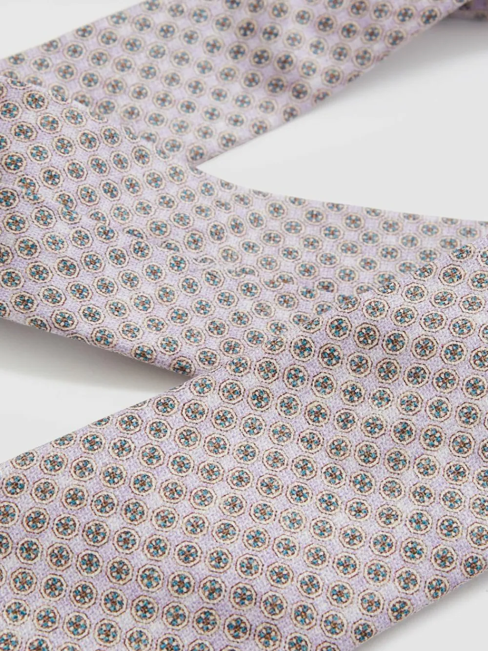The soft pink Santo tie is crafted from 100% silk with a refined woven finish, showcasing a sophisticated small medallion print that adds a classic touch to formal looks. 100% silk Woven finish Small medallion print Width 8cm Dry clean only. 100% Silk.