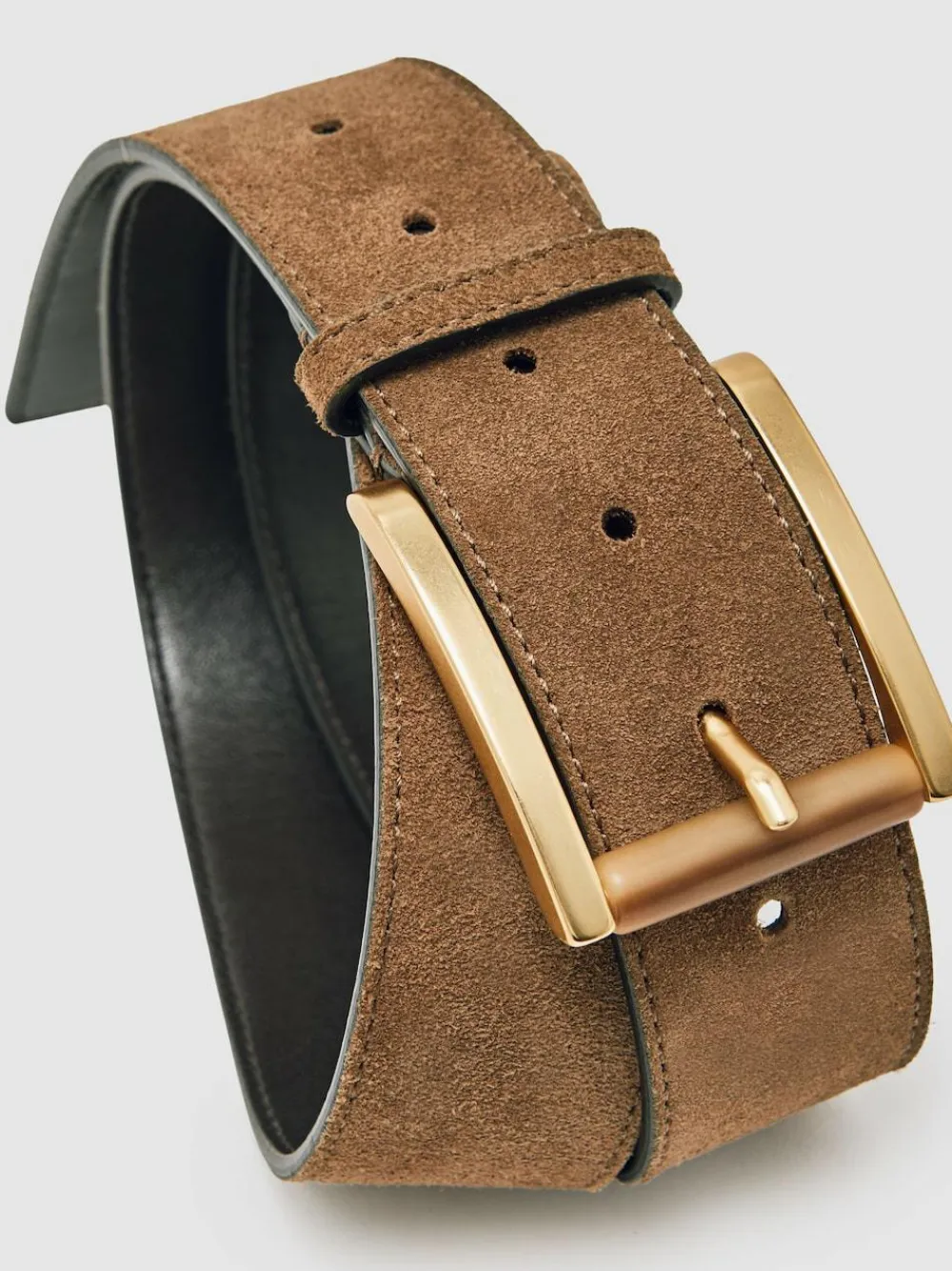 The Rosie belt is an effortlessly wearable accessory to complete your outfit. Crafted from supple suede it is accented with a gold-tone roller buckle. 100% suede Gold-tone roller buckle Punch holes Square tip Adjustable fit Width 3.5cm 100% Suede leather.