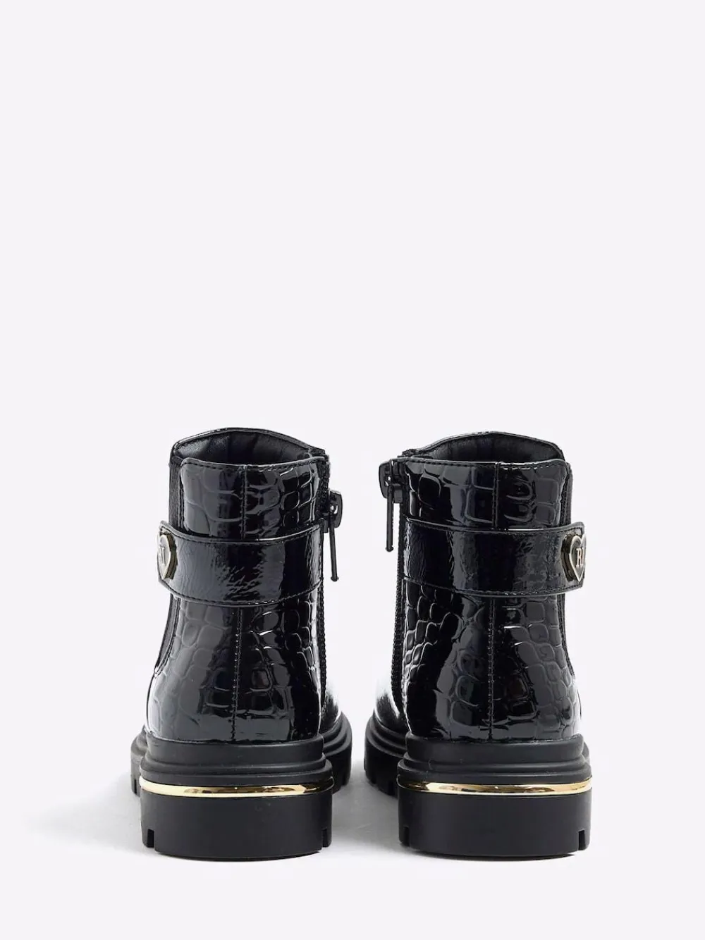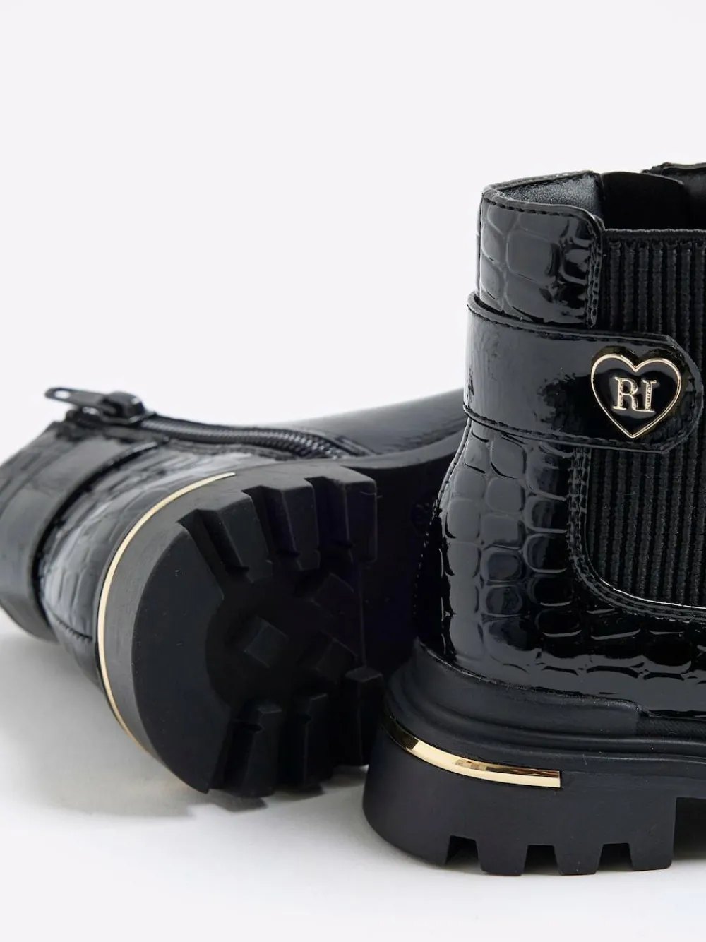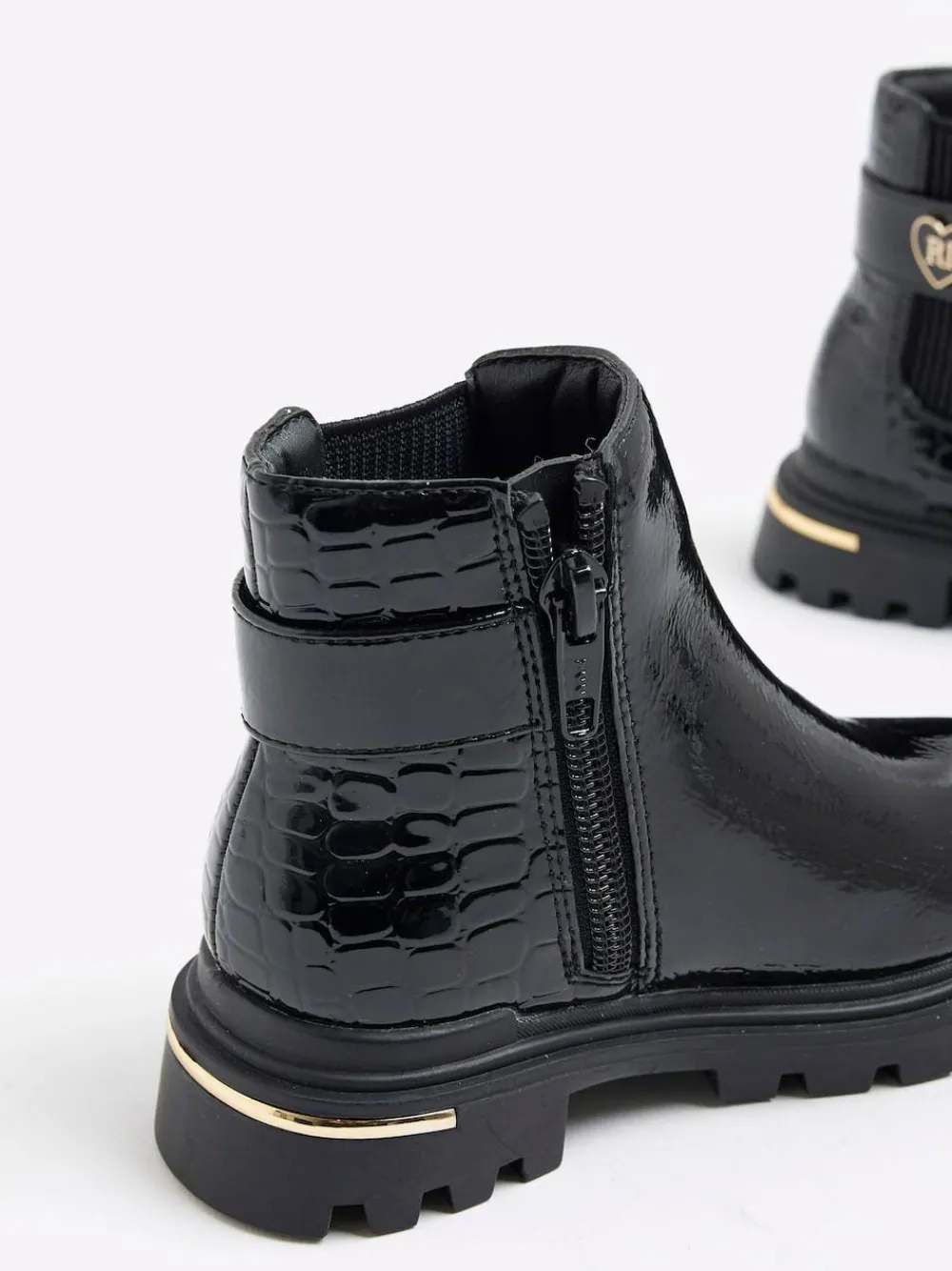 River Island Black Patent Heart Print Strap Chelsea Boots^ Baby Boots|Boots