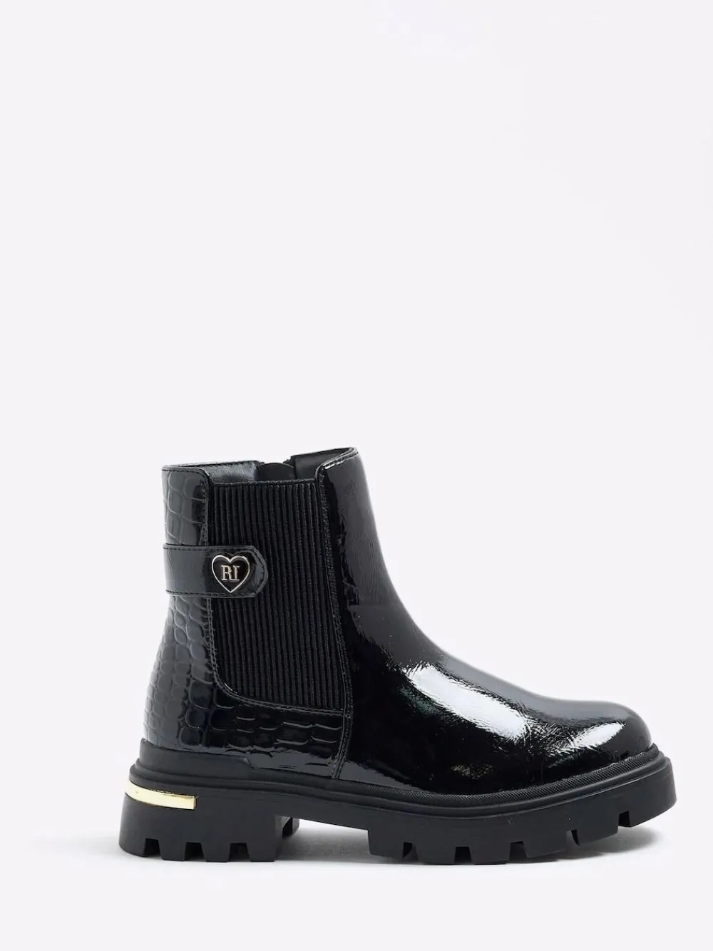 River Island Black Patent Heart Strap Chelsea Boots^ Boots & Wellies