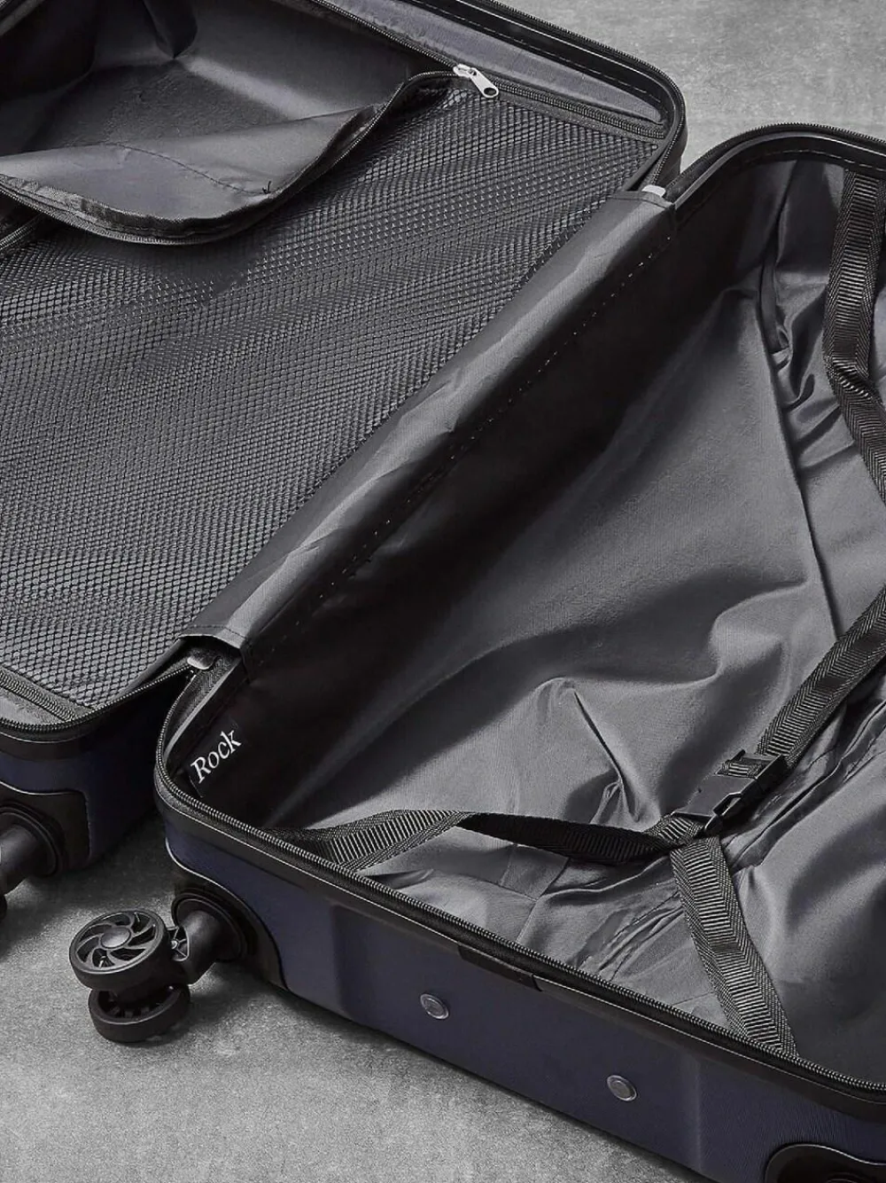 ‘Lincoln delivers an easy departure for every trip. With sharp lines and practical production, Lincoln’s a great choice for the budget-conscious traveller, seeking a stylish packing solution for every trip. Lincoln is a brilliant choice for efficient packing and effortless travel Lincoln is equipped with a telescopic, push-button handle plus 8 smooth rolling wheels with effortless 360-degree rotation makes every journey a walk in the park All Rock products come with a 15-year manufacturer’s warranty against manufacturing defects arising from faulty workmanship or materials The 3 cases can be nested inside one another to save space when not in use Dimensions: SML: 54 x 35 x 21cm, 2.6kg, 31 litre capacity MED: 66 x 45 x 26cm, 3.5kg, 62 litre capacity LRG: 76 x 51 x 30cm, 4.4kg, 98 litre capacity 100% ABS (Acrylonitrile Butadiene Styrene).