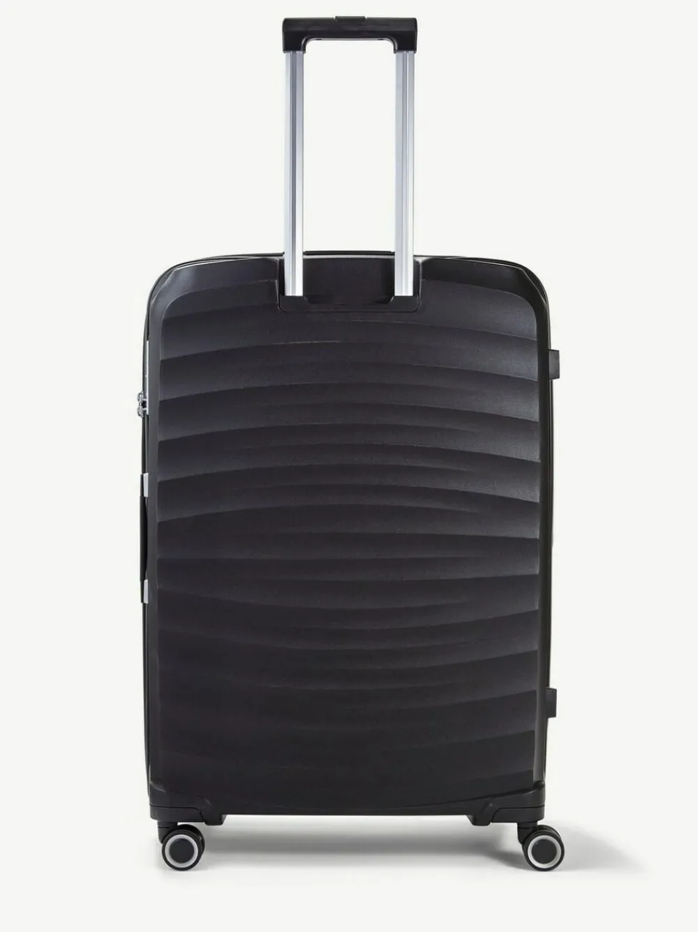 A Superhero Suitcase! This Rock suitcase is made from ultra-strong polypropylene, which is tough, durable, and impact-resistant. Expandable – leave your packing worries behind with Sunwave’s expander zip, which can be opened to increase the volume of the case, providing valuable additional packing capacity for any last-minute extras or new purchases you may need to squeeze in Tough & Practical – 8 smooth rolling wheels and a telescopic, push-button handle will help you glide effortlessly on your travels Integrated TSA combination lock – For your complete peace of mind, Sunwave cases are fitted with an integrated TSA combination lock The interior has luxurious soft-touch full lining and a mesh divider section All Rock products come with a 15-year manufacturer’s warranty against manufacturing defects arising from faulty workmanship or materials 79 x 53 x 34/38.5cm, 5.1kg, 120/136 (when using expander option) litre capacity. Height 79cm Width 53cm Depth 34cm 100% Polypropylene.